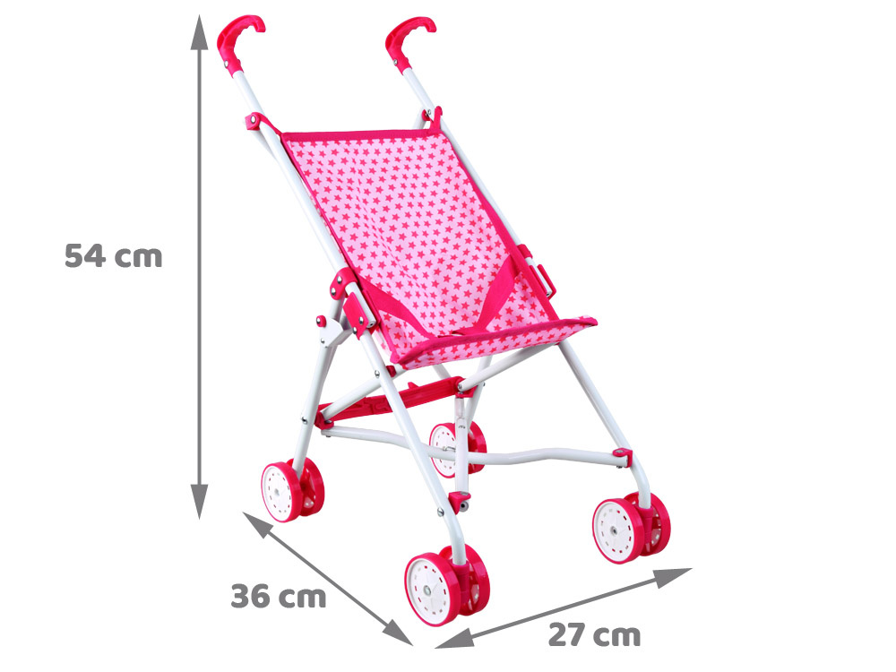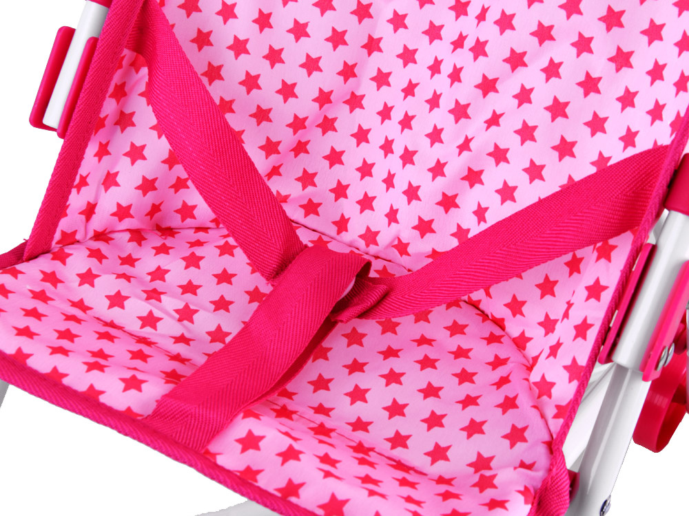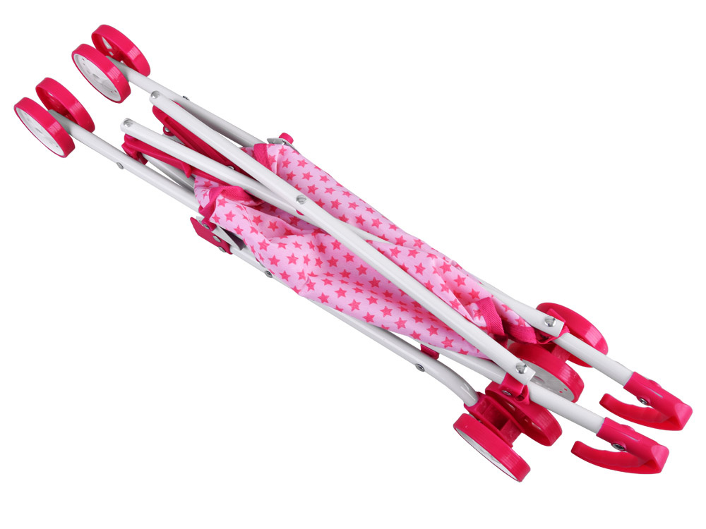 Skládací kočárek pro panenky v rozkošné růžové barvě s hvězdičkami se hodí ke každému oblečení. Lehký a stabilní kočárek je ideálním řešením!