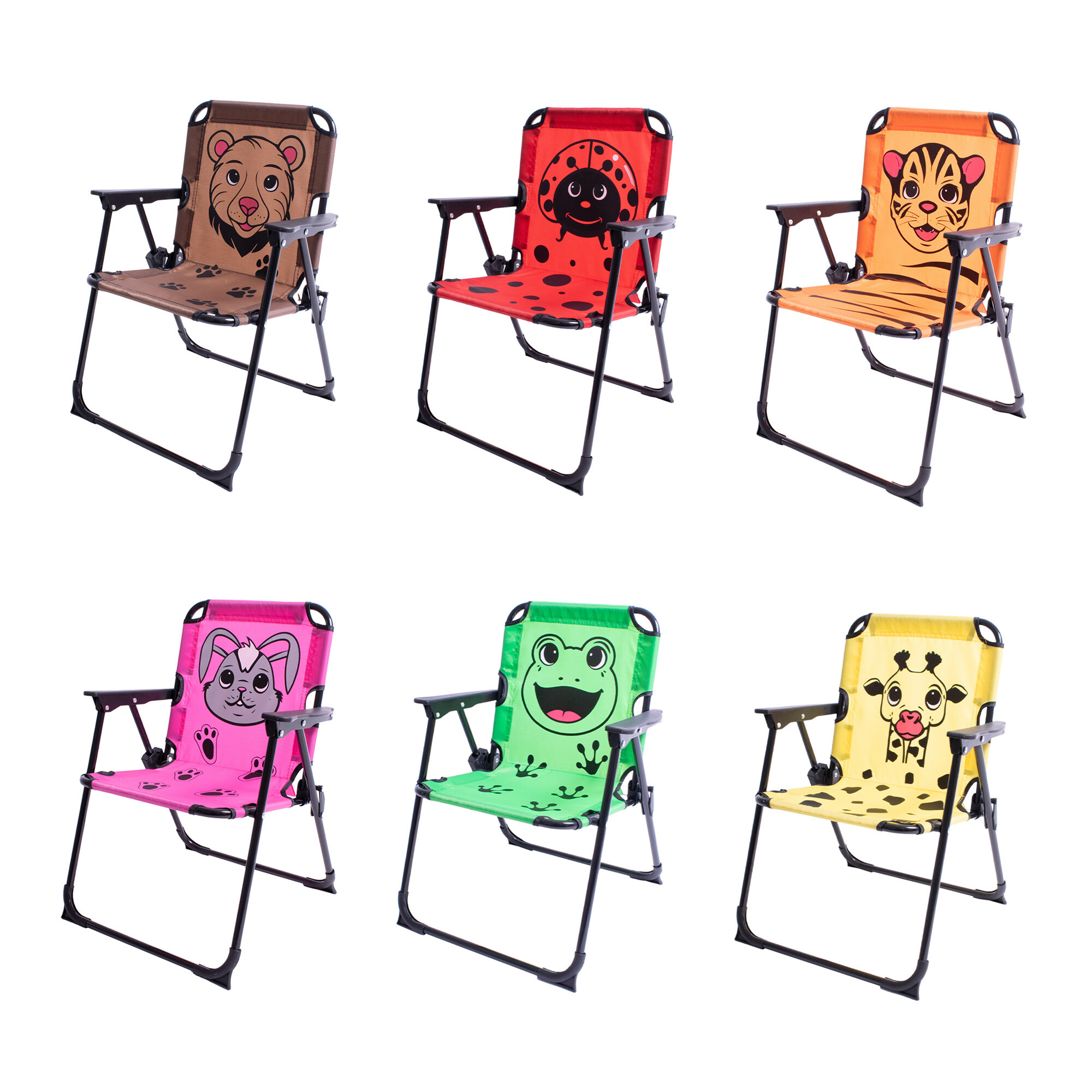 Skládací křesílko s dětským motivem si vaše děti zamilují. Je vyrobené z kovové rozkládací konstrukce s polyesterovým potahem s obrázkem zvířátka.