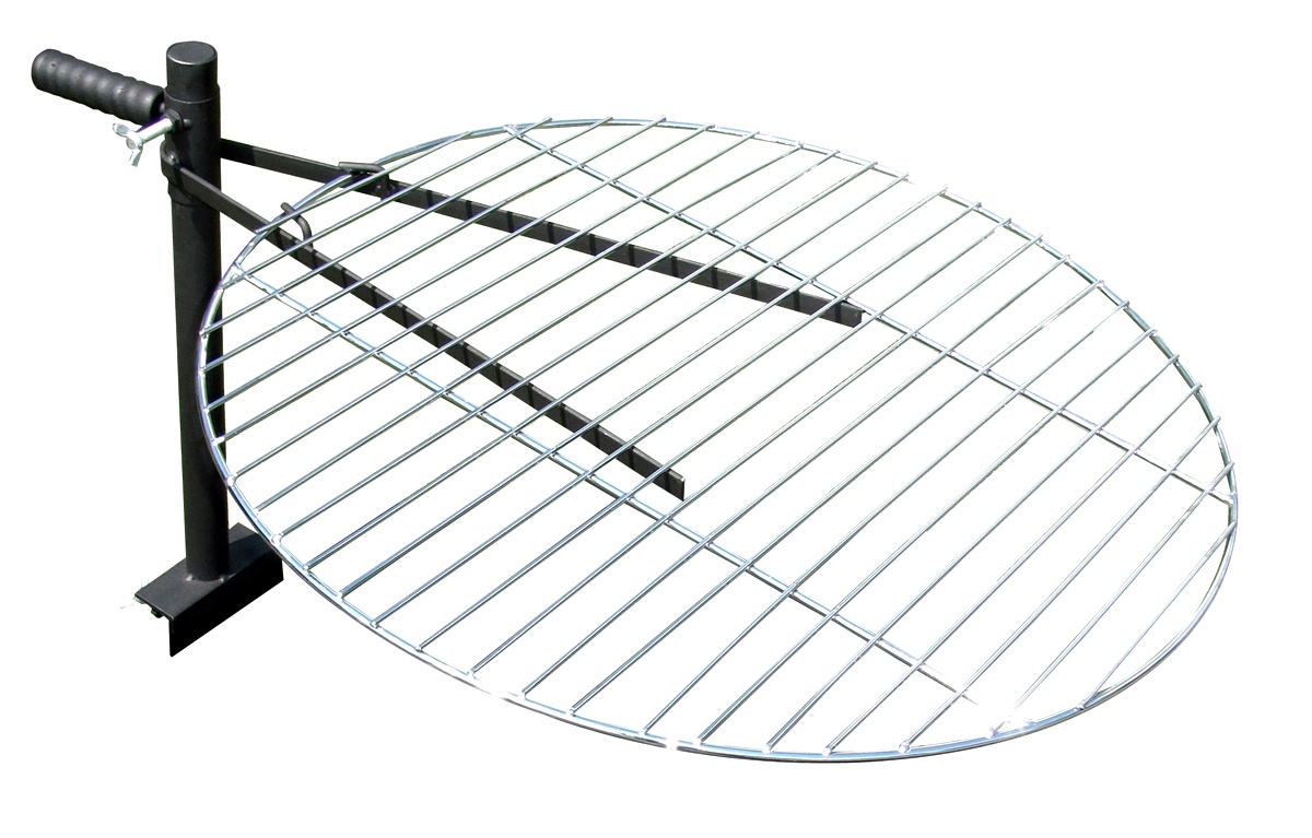 Otočný grilovací rošt na ohniště s polohovacím držákem o průměru 60 cm. Praktický rošt pro grilování masa a zeleniny, který je možno snadno vytáčet mimo prostor ohniště.