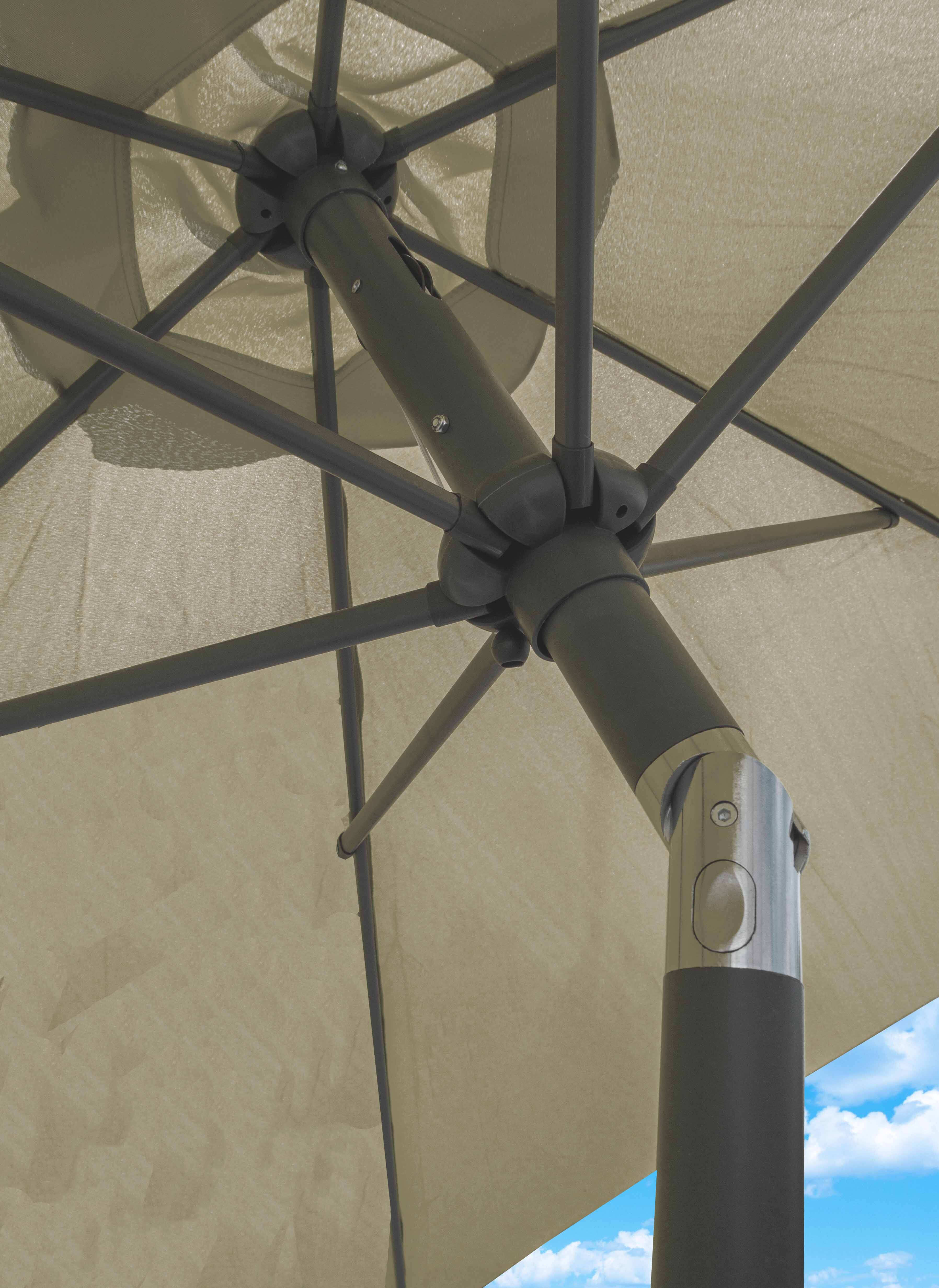 Snadnou manipulaci při rozkládání a skládání slunečníku zajišťuje jednoduchý klikový mechanismus.