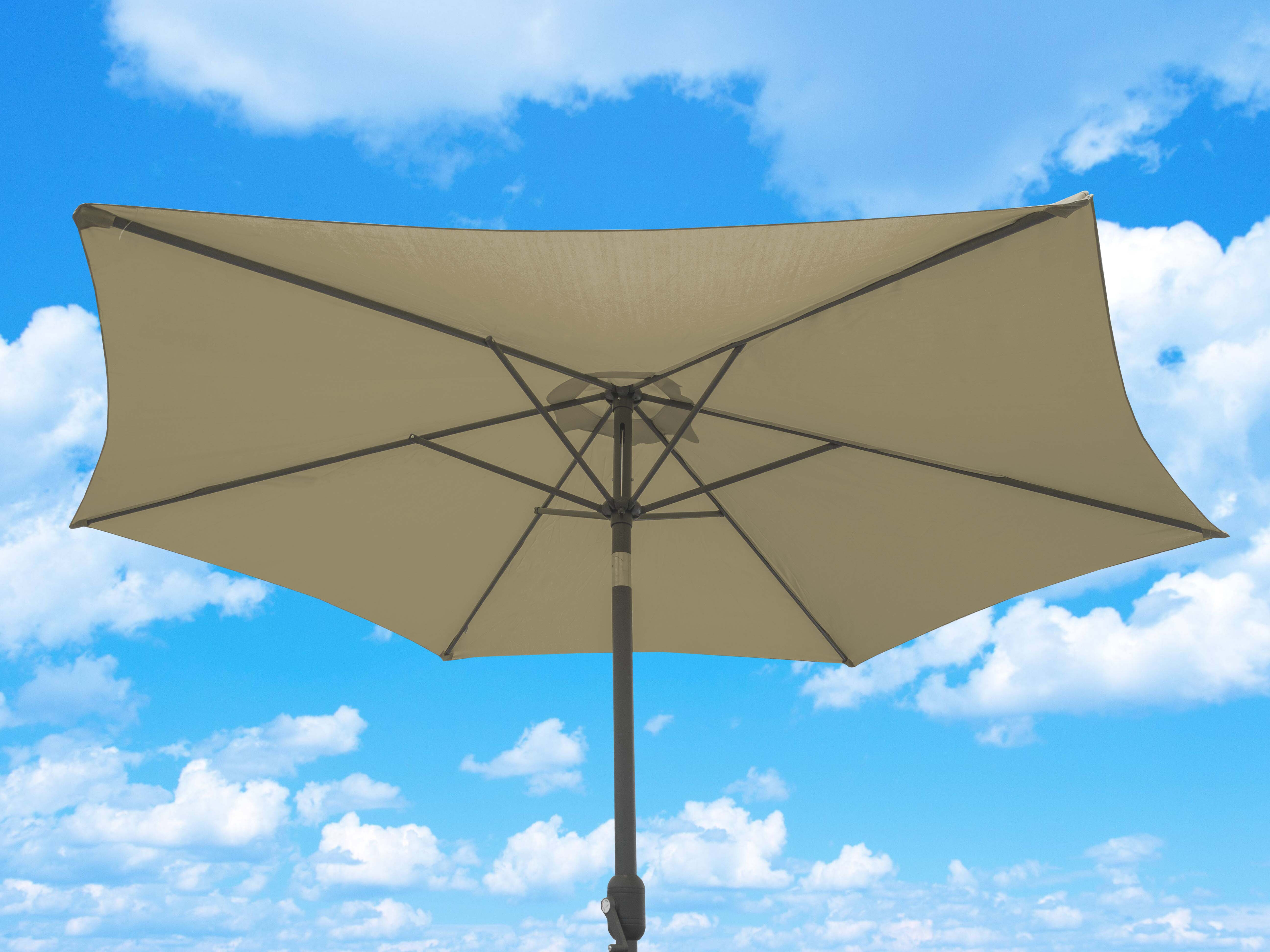 Klasický zahradní slunečník s pevnou konstrukcí a kvalitním potahem, vyrobeným z odolného polyesterového materiálu.