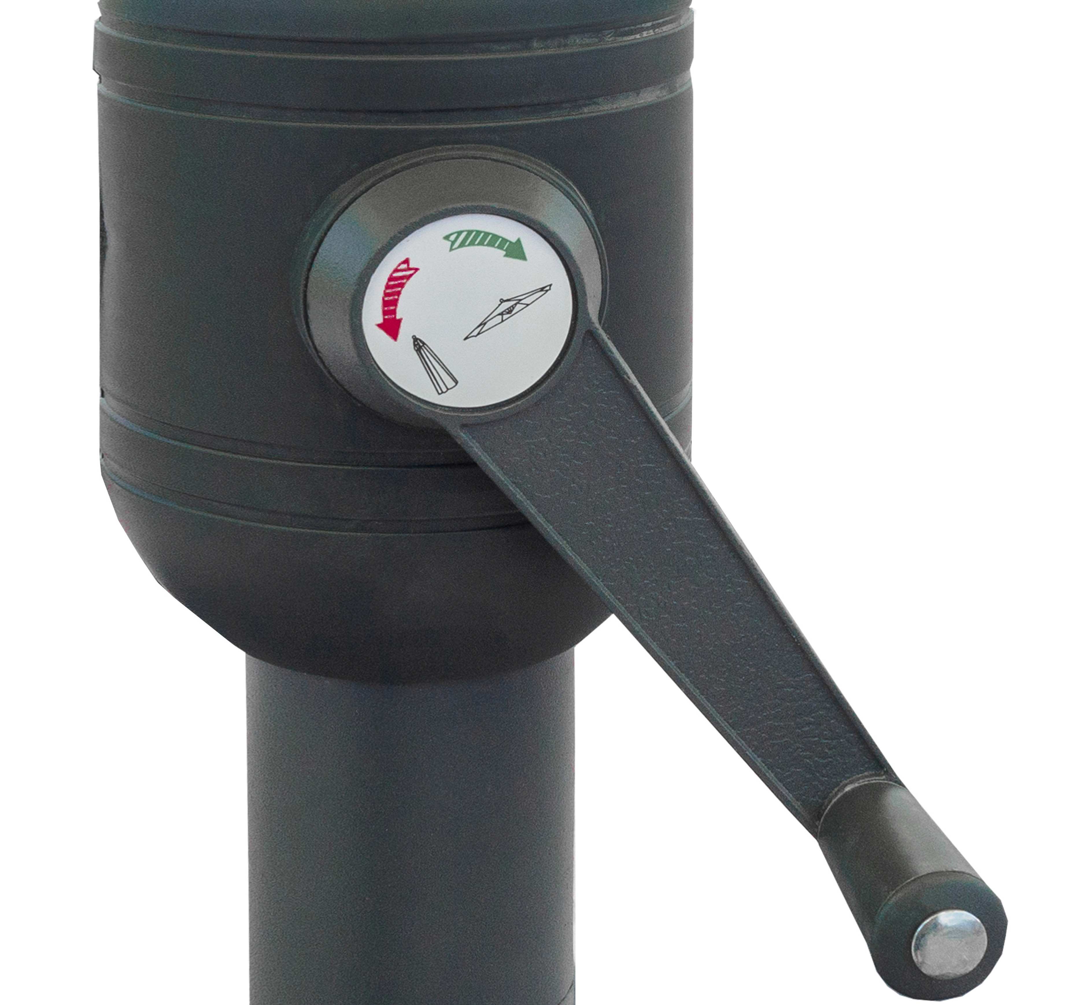 Snadnou manipulaci při rozkládání a skládání slunečníku zajišťuje jednoduchý klikový mechanismus.