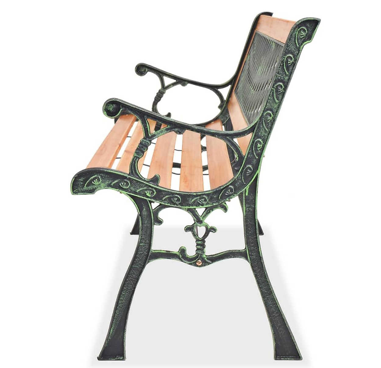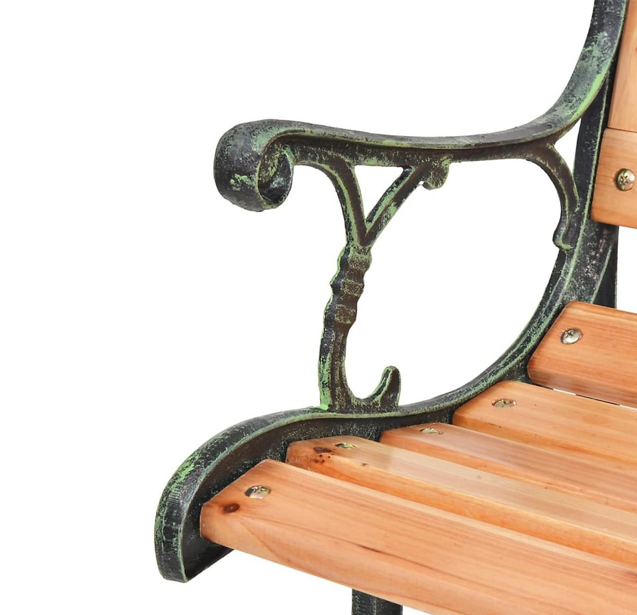 Pevná litinová konstrukce, která je doplněna o dřevěné latě. Nosnost lavice 150 kg.