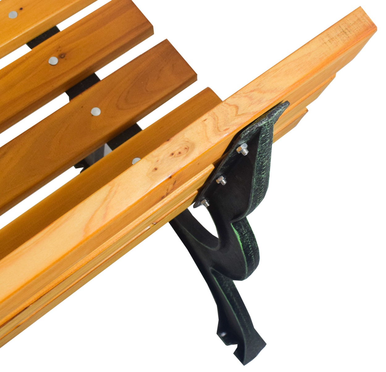 Pevná litinová konstrukce, která je doplněna o dřevěné latě. Nosnost lavice 240 kg.