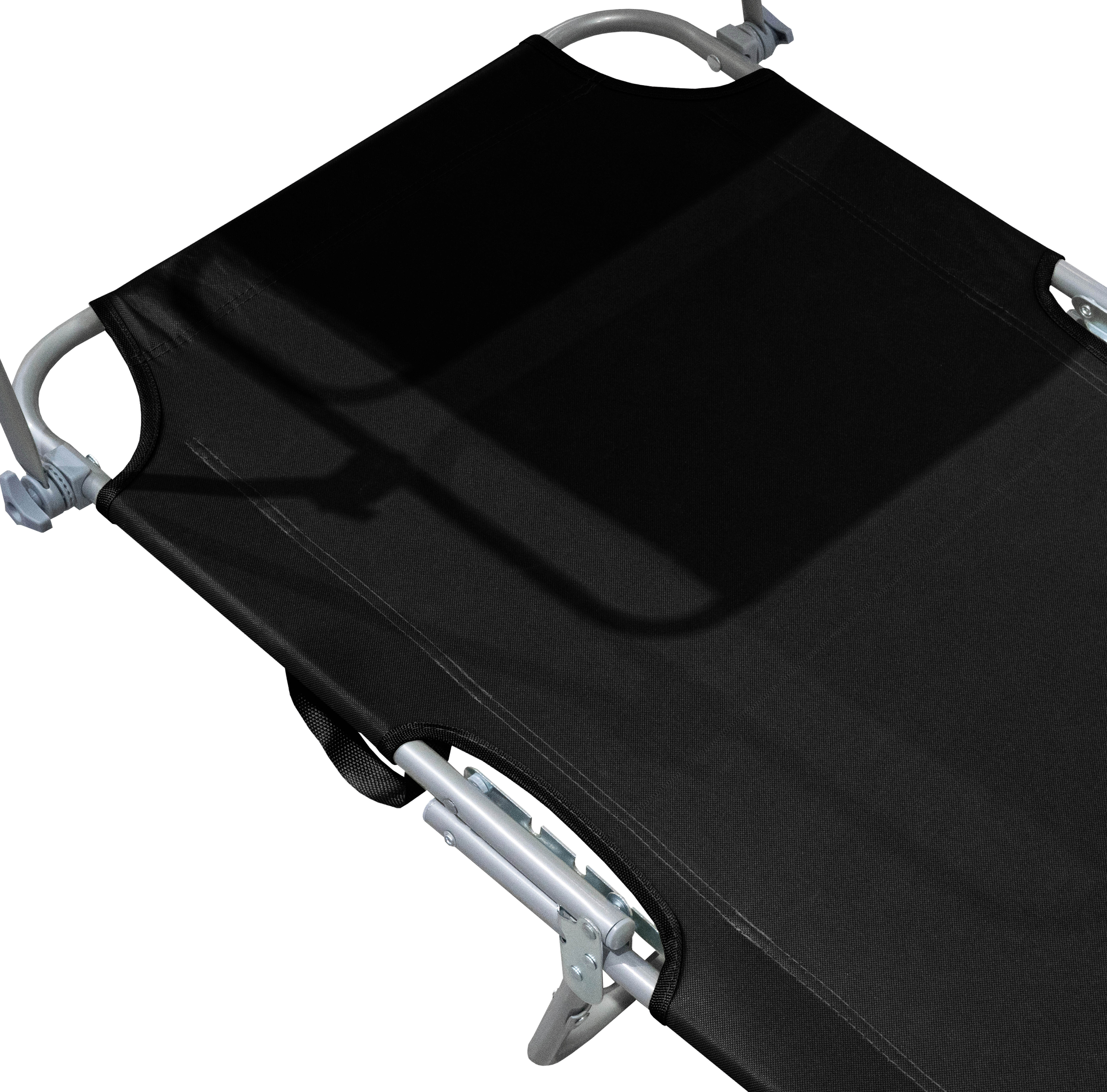 Skládací zahradní lehátko se zpevněnou ocelovou konstrukcí, v moderním designu, vhodné pro zahrady, na kempování či pláže.