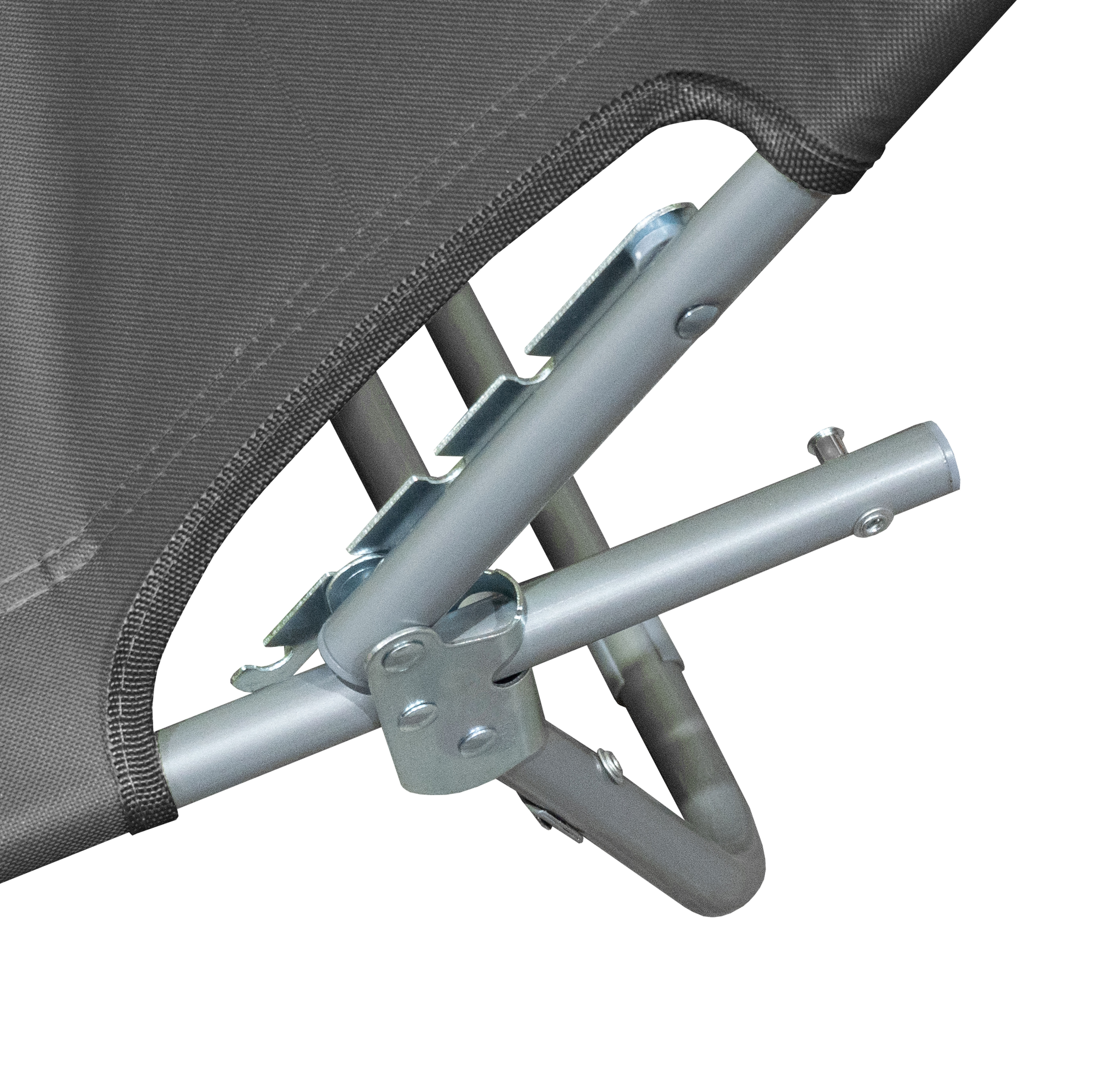 Skládací konstrukce lehátka umožňuje jednoduché rozložení i složení. Ocelové trubky o průměru 18 mm zajišťují vysokou odolnost, pevnost, stabilitu a nosnost až 150 kg.