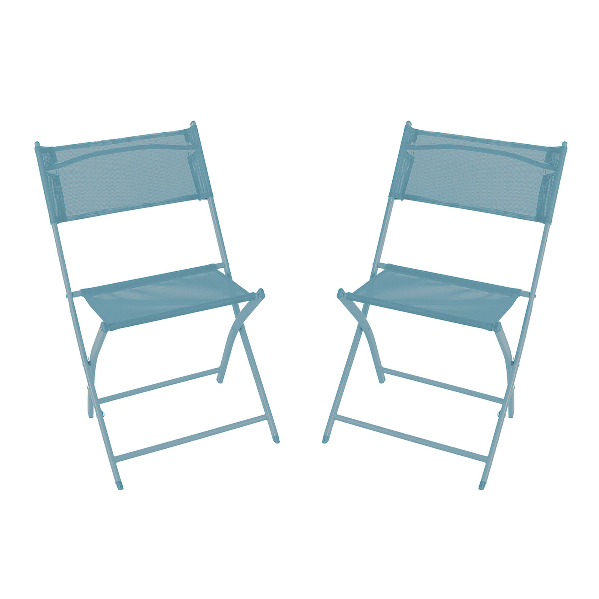 Sestava zahrnuje 2 křesla a stůl v modré barvě. Zahradní stolek má kovový rám a skládací mechanismus kostry, díky tomu můžete stolek velmi rychle rozložit nebo složit.