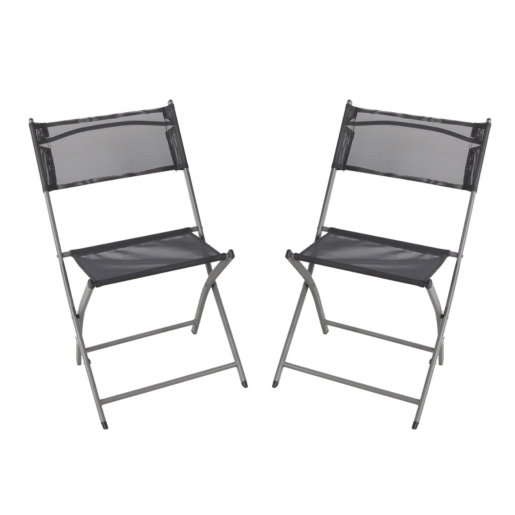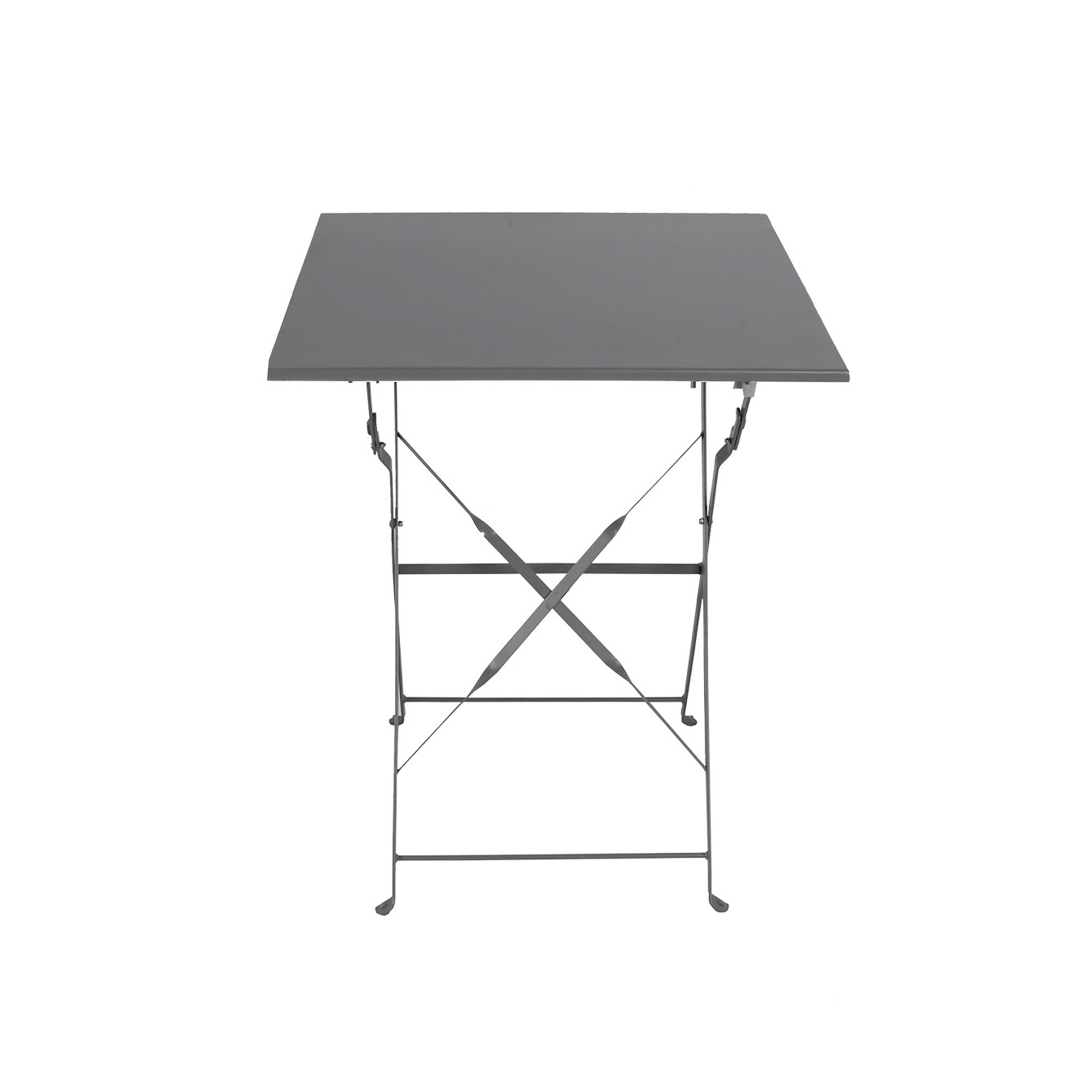 Sestava zahrnuje 2 křesla a stůl v šedé barvě. Zahradní stolek má kovový rám a skládací mechanismus kostry, díky tomu můžete stolek velmi rychle rozložit nebo složit.