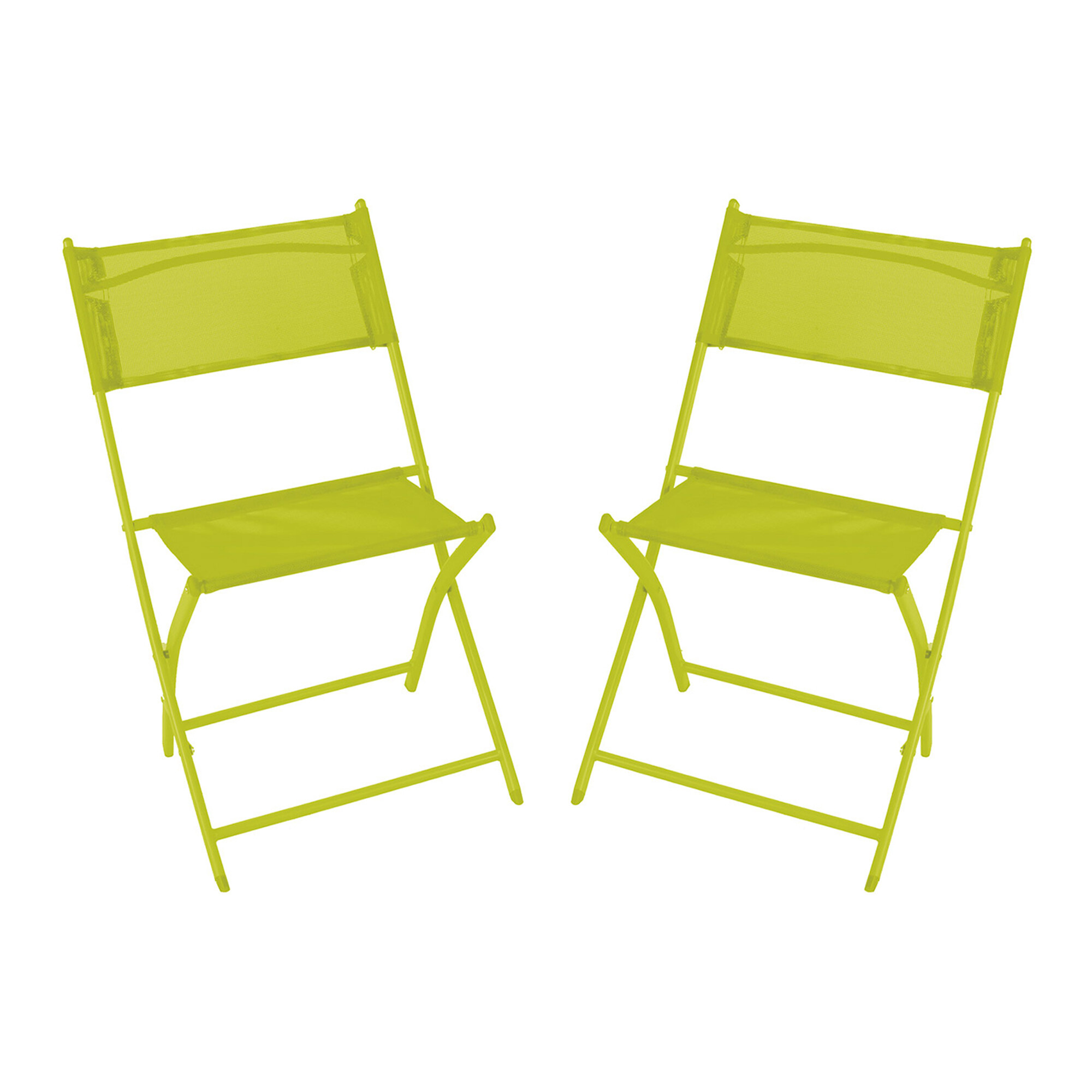 Sestava zahrnuje 2 křesla a stůl v zelené barvě. Zahradní stolek má kovový rám a skládací mechanismus kostry, díky tomu můžete stolek velmi rychle rozložit nebo složit.
