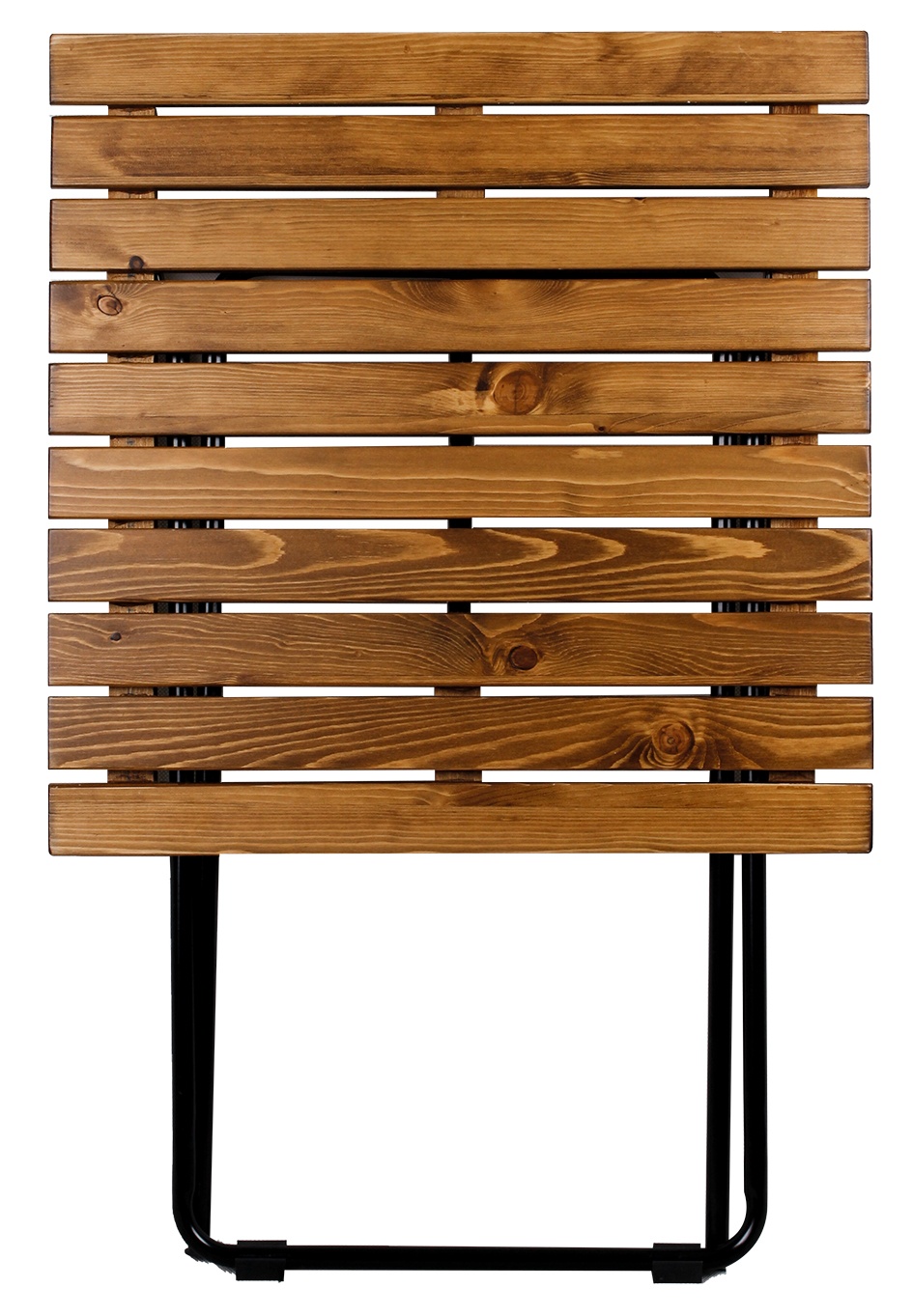 Skládací zahradní stolek s pevným kovovým rámem a dřevěnou deskou, ideální pro zahrady, terasy, altány, balkóny, ale také do interiéru restaurací a kaváren.