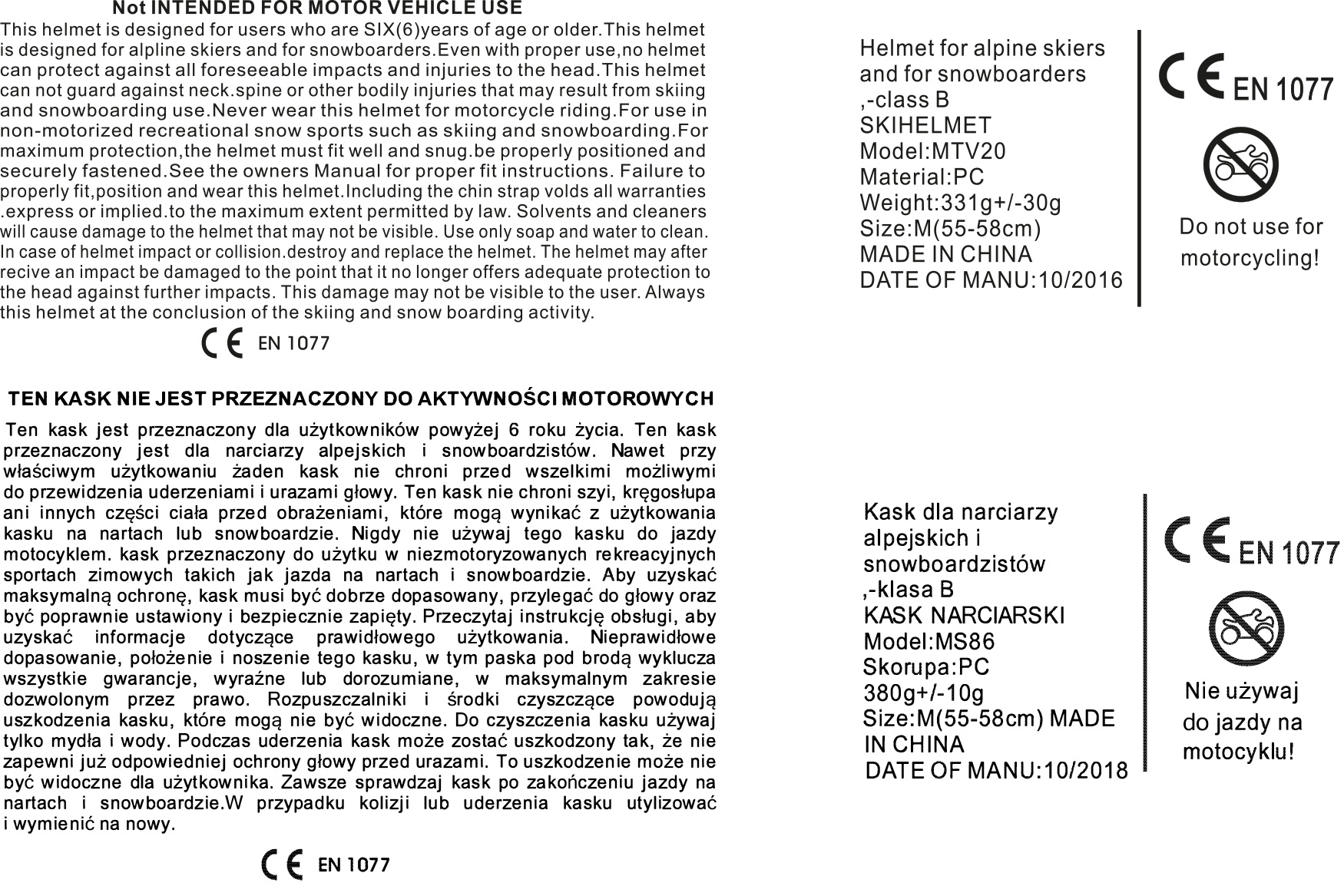 | varování | NENÍ URČENO PRO POUŽITÍ V MOTOROVÝCH VOZIDLECH. TATO PŘILBA JE URČENA PRO UŽIVATELE, KTEŘÍ JSOU ŠEST (6) LET NEBO STARŠÍ.TATO PŘILBA JE URČENA PRO ALPSKÉ LYŽAŘE A SNOWBOARDISTY. |