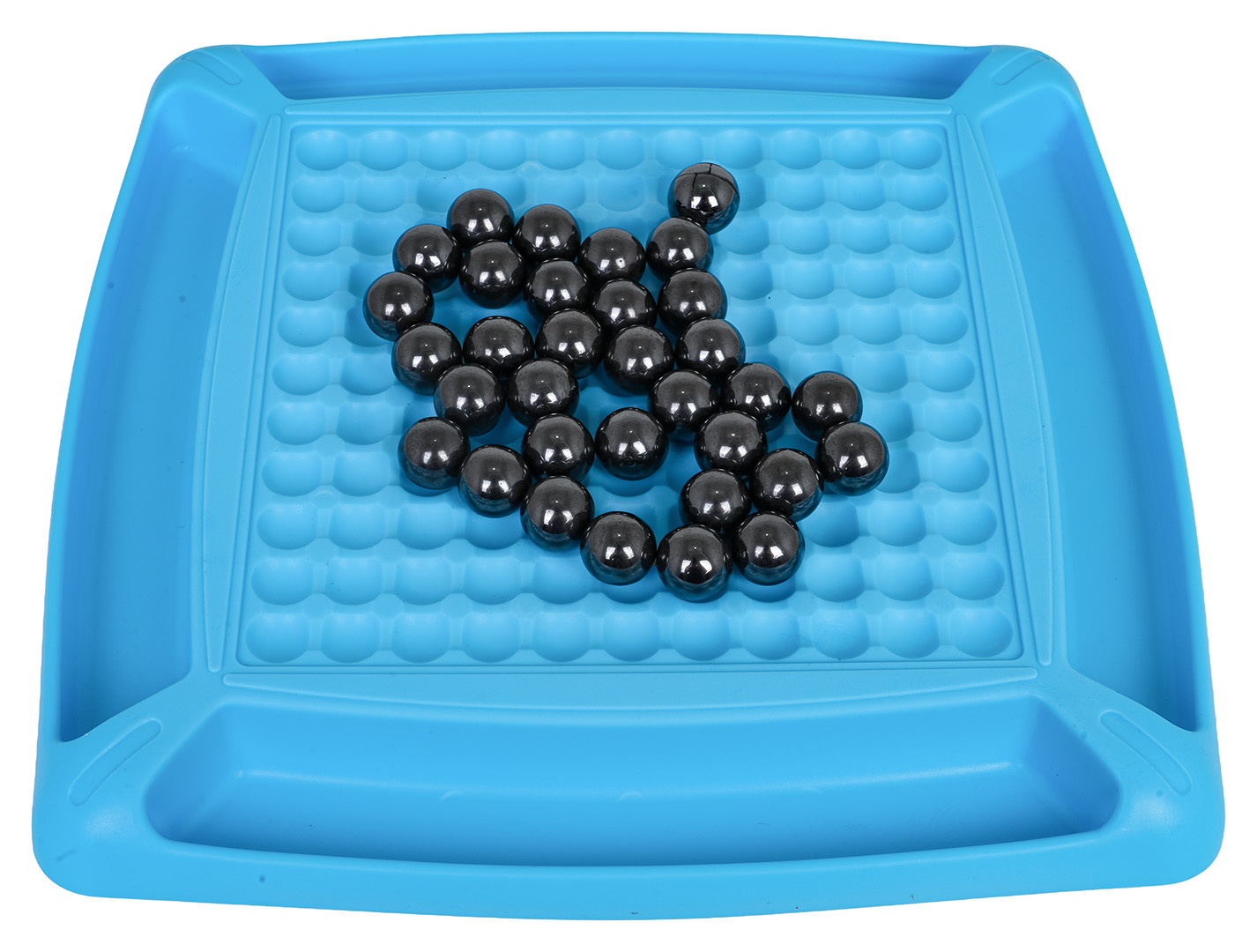 Náhodné házení kuliček na desku. Díky magnetickému přitahování budou kuličky tvořit různé jedinečné tvary.