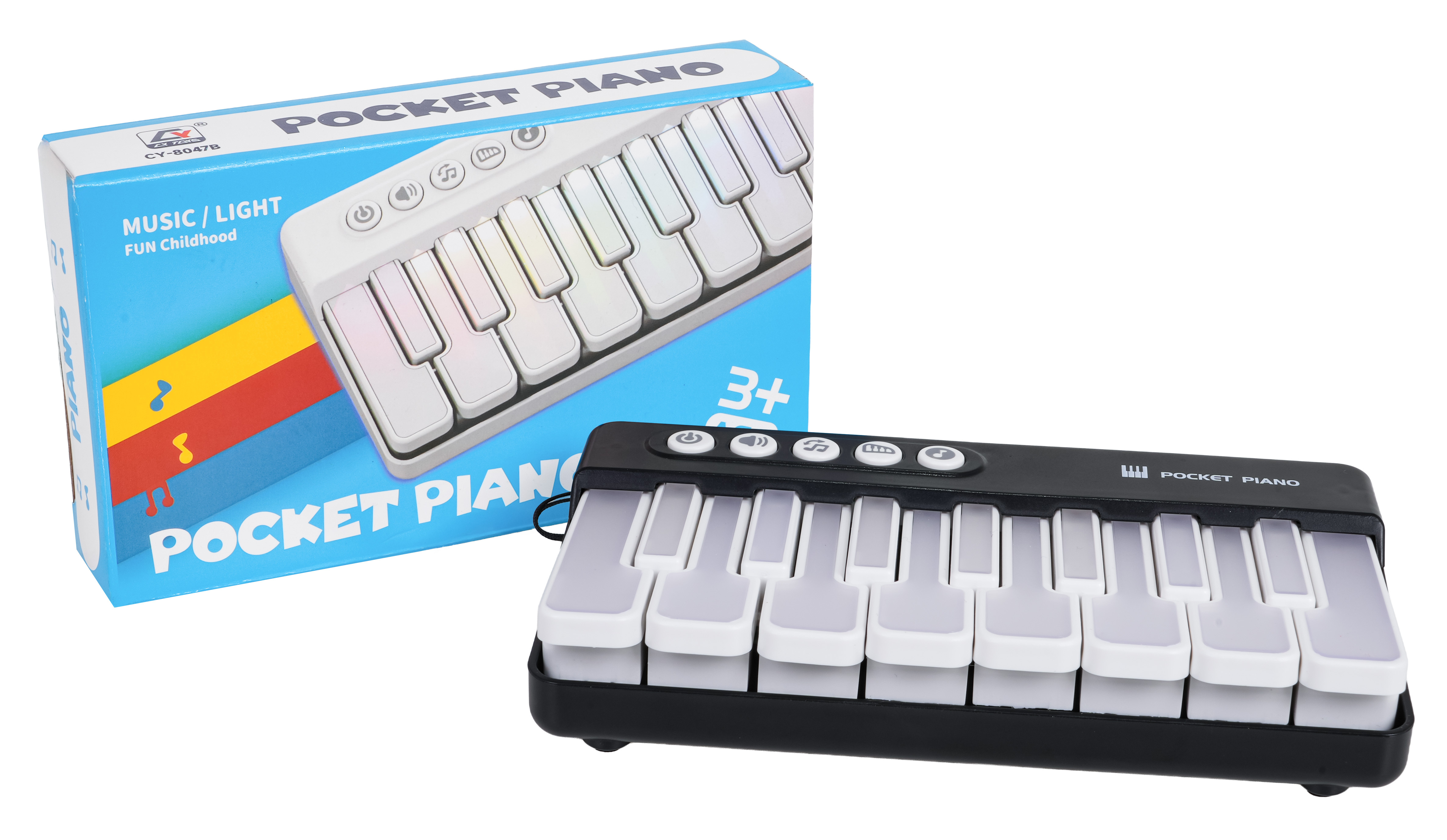 Přenosné černé pianko, pro děti od tří let. Pianinko bude užitečné při učení hry díky podsvíceným klávesám, které ukazují, jak hrát. Konstrukce pianina je lehká a kompaktní, což umožňuje vzít ho kamkoli s sebou. Hračka je napájena bateriemi typu 3 x AAA 1,5V (nejsou součástí balení).