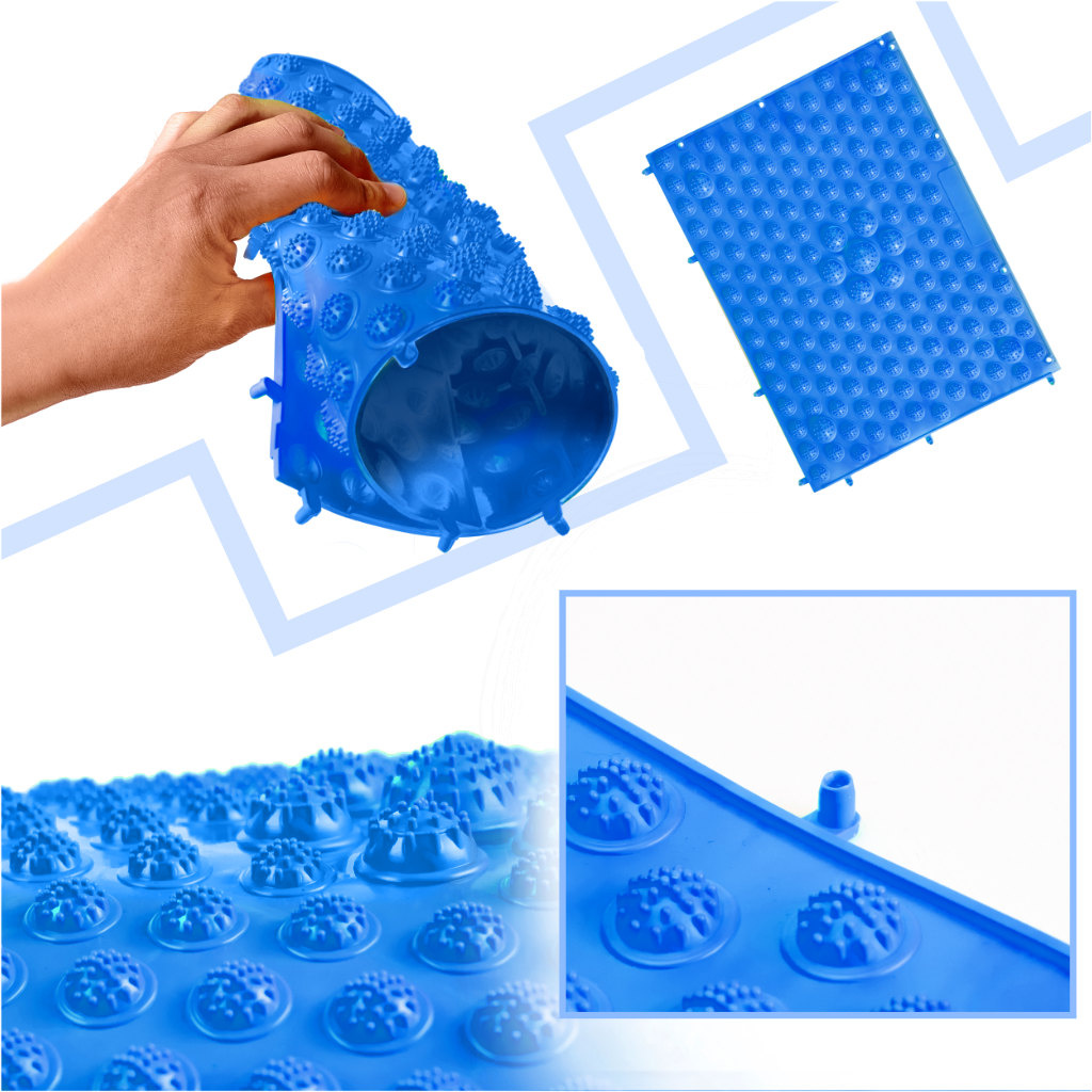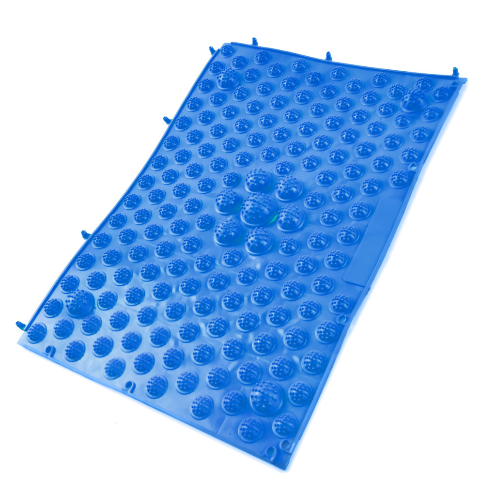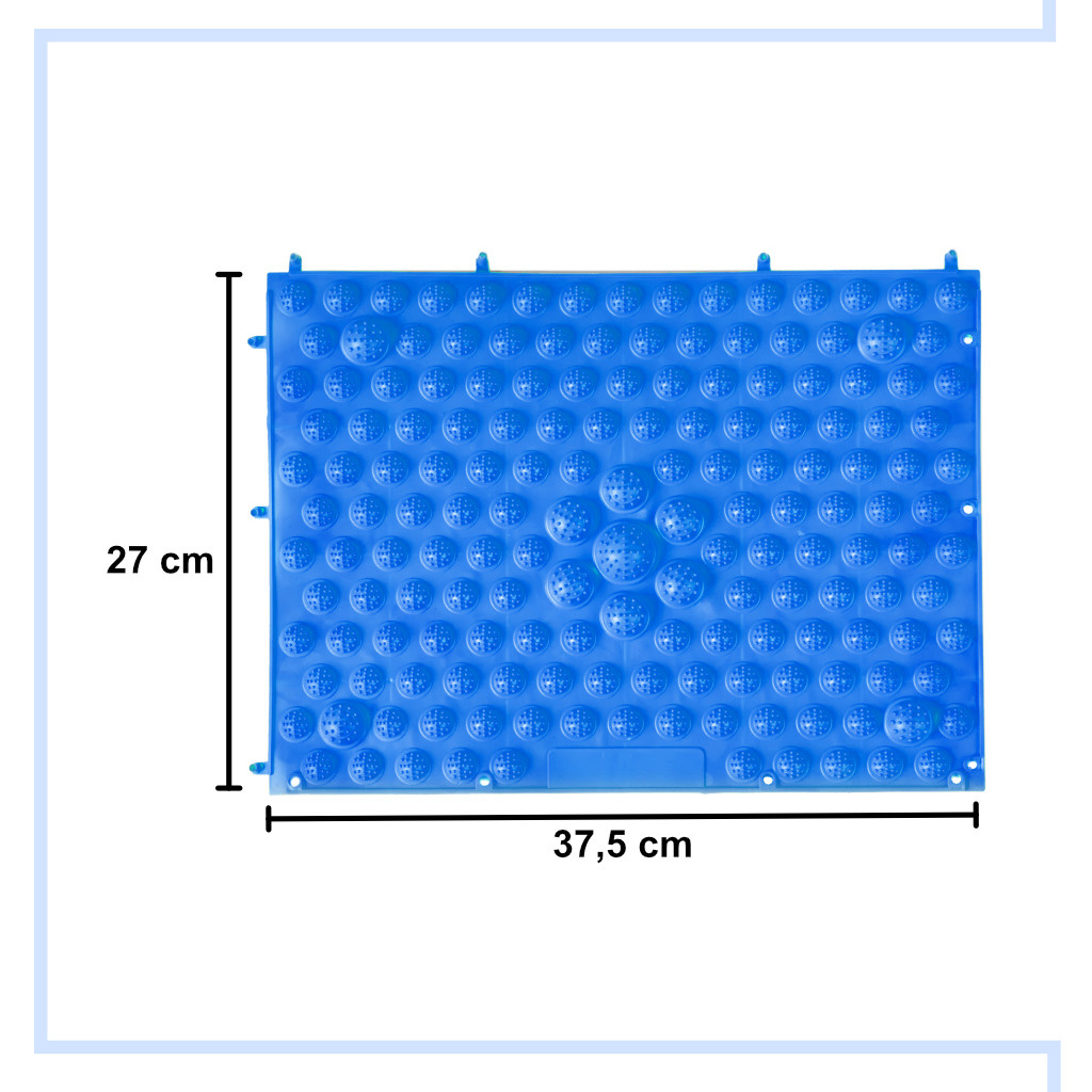Korekční, smyslová masážní podložka. Je vybavena řadou výstupků, které vám umožní masírovat unavená chodidla a stimulovat jejich krevní oběh. Podložky lze spojit pomocí háčků. Plast: Plast TPE. Rozměry: 37,5x27 cm.