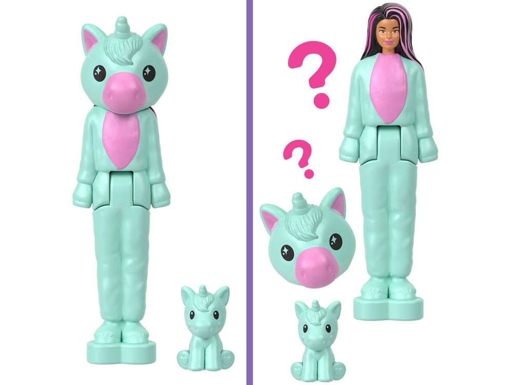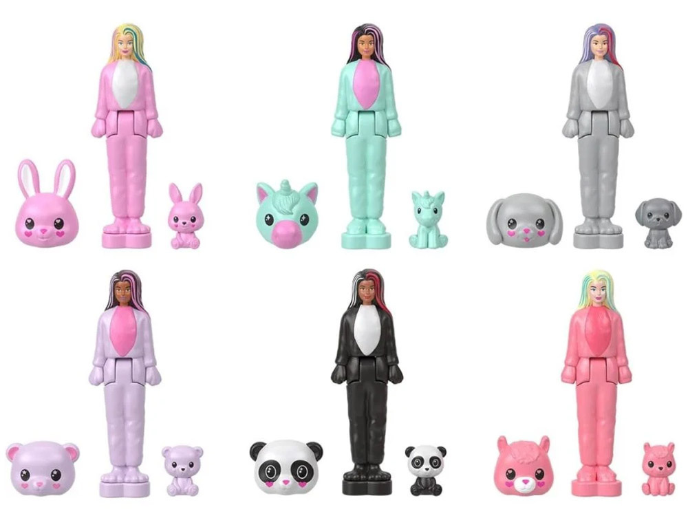 V každé tubě se nachází náhodná panenka Barbie® Cutie Reveal™ v roztomilém zvířecím kostýmu a odpovídající miniaturní zvířátko. V této sérii k objevení jsou: