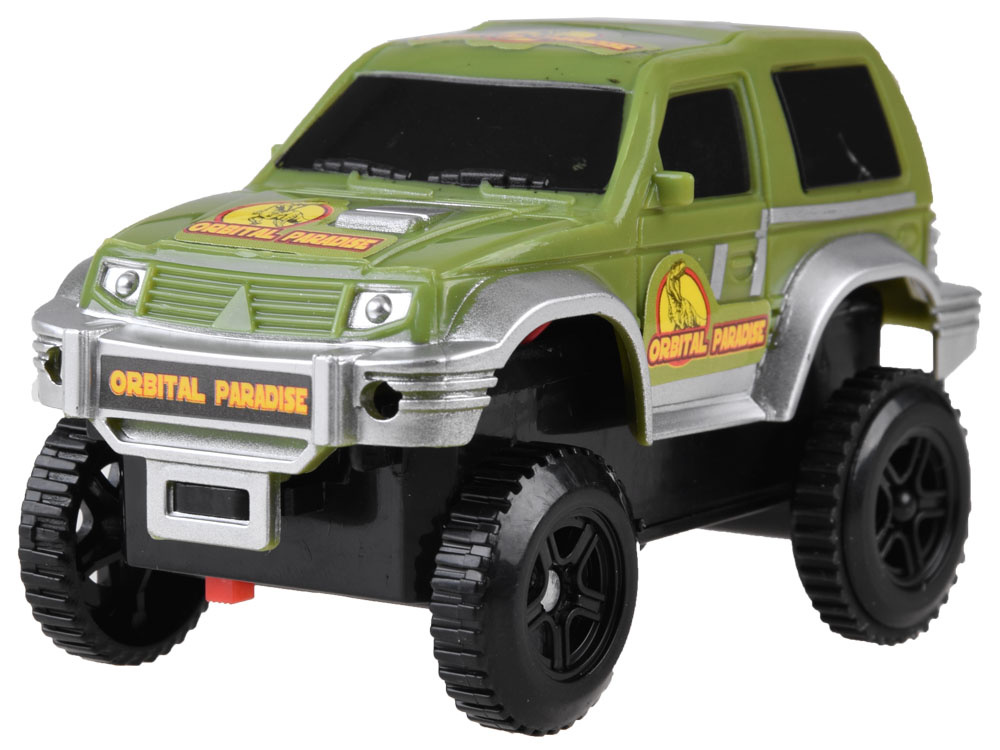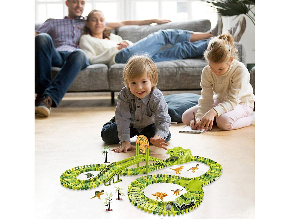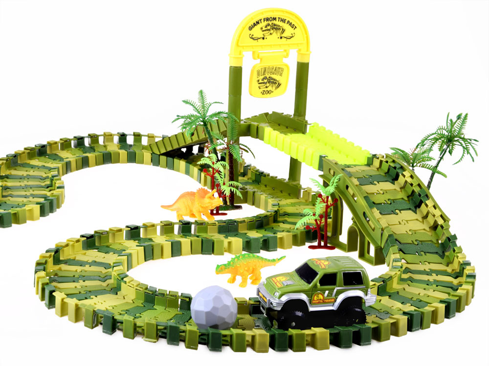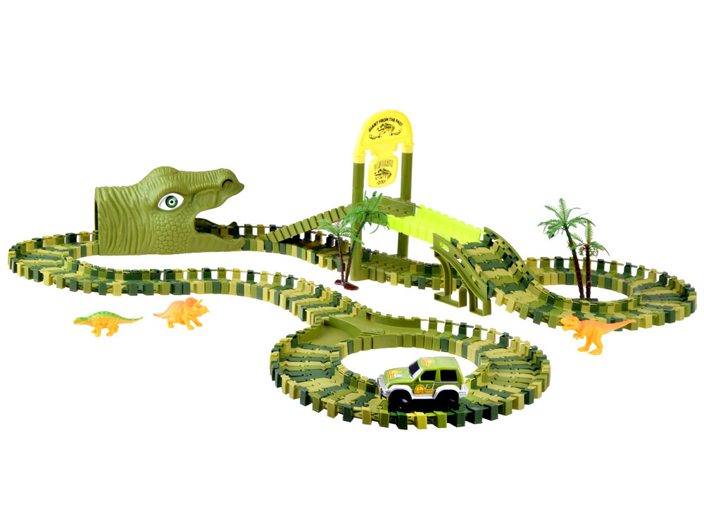Autíčko, které je součástí sady, naviguje po připravených trasách samostatně (vyžaduje 1 x baterii AA, není součástí balení). Figurky prehistorických tvorů a palmy dodávají dinosauřímu parku jedinečnou atmosféru. Při hraní si můžete vymýšlet úžasné příběhy, jako například. utíkat před řítícím se balvanem nebo rozzuřeným dinosaurem.