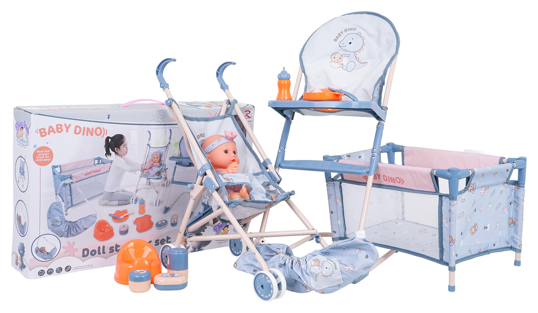- bohatě vybavená sada pro panenky určená pro děti od tří let,