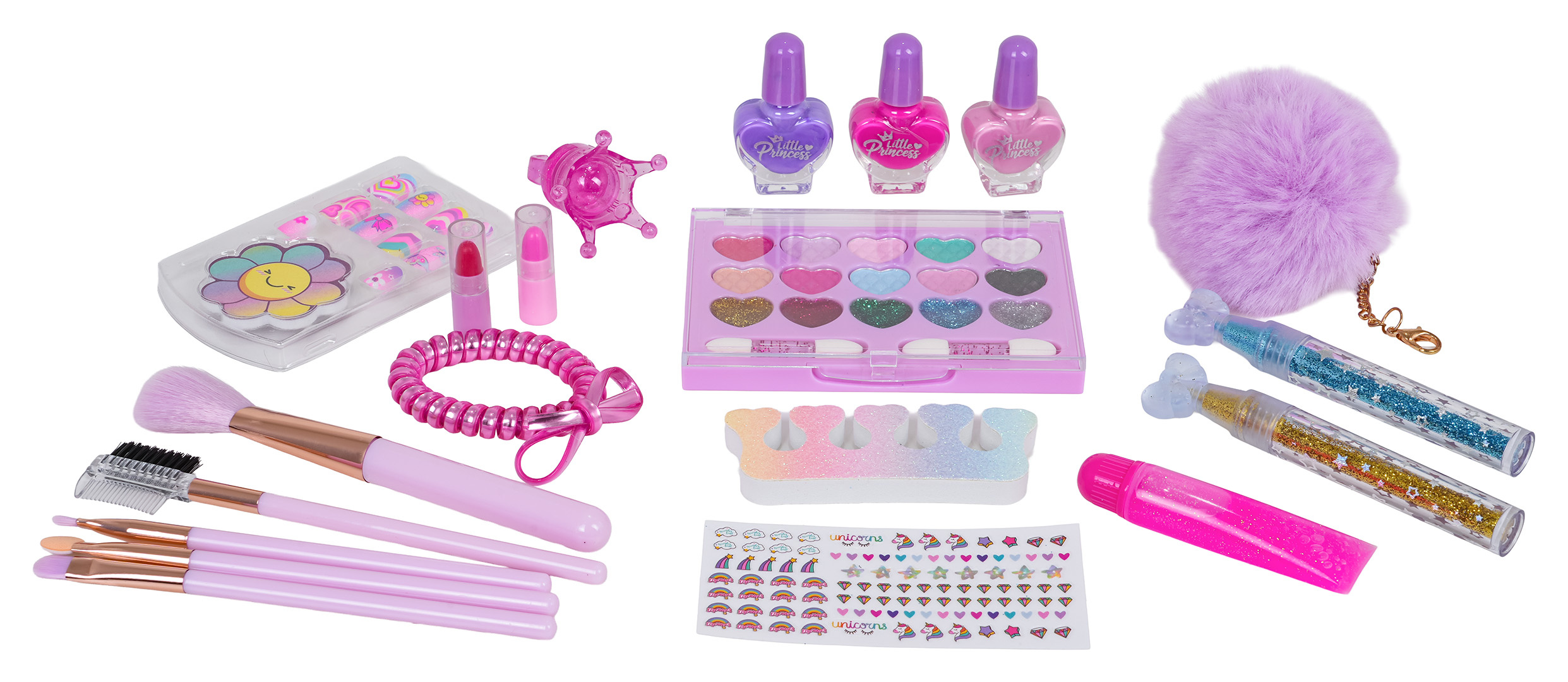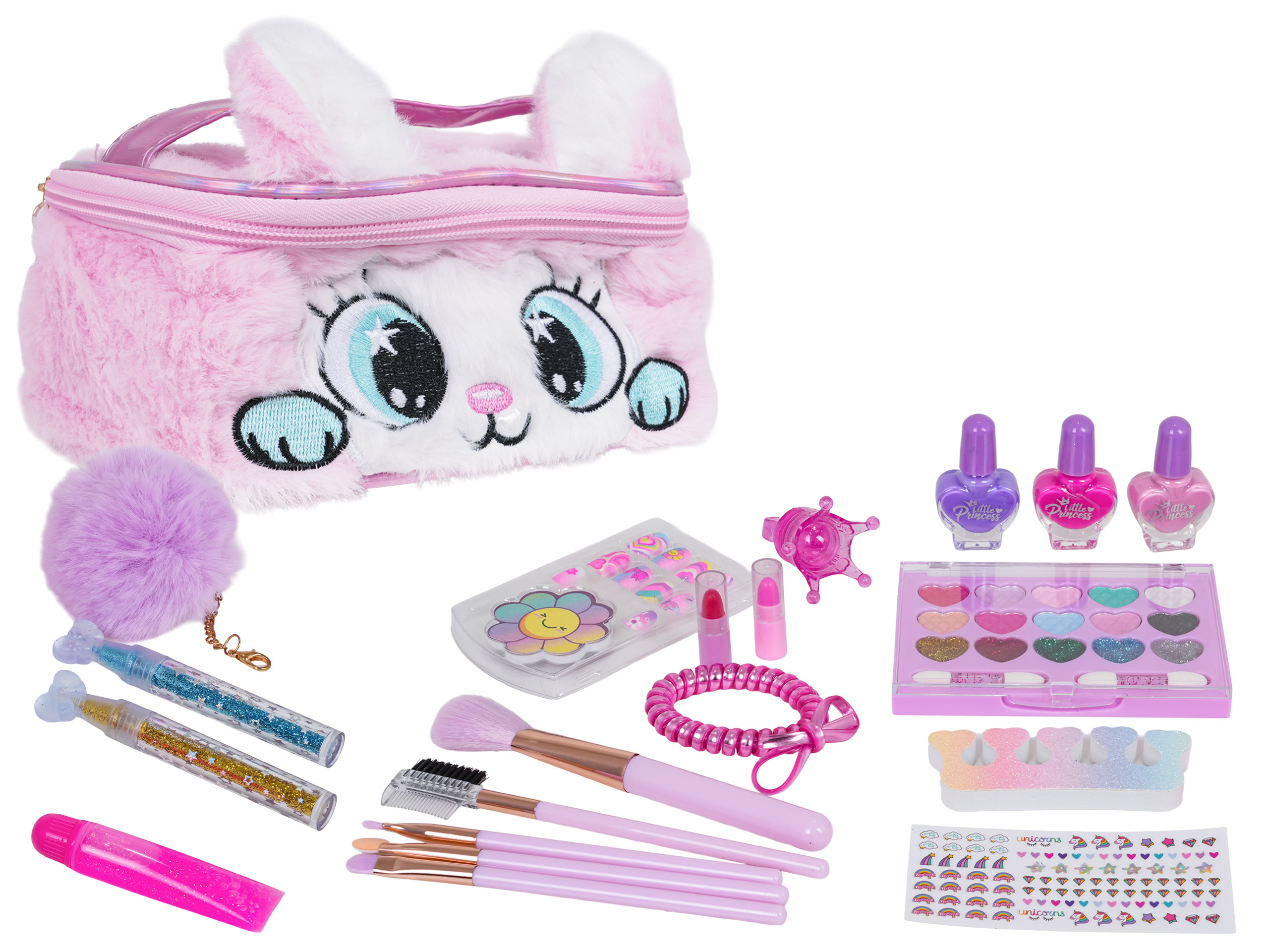Sada malé stylistky v krásné kabelce pro děti od tří let. Plyšová kabelka s kočičkou pojme takové poklady jako: laky na nehty, oční stíny, štětce, umělé nehty a mnoho dalších. Sada je vyrobena z nejkvalitnějších materiálů bezpečných pro děti. Kosmetika nezpůsobuje alergie, je hypoalergenní, snadno se smývá, stačí jen voda s přídavkem mýdla.