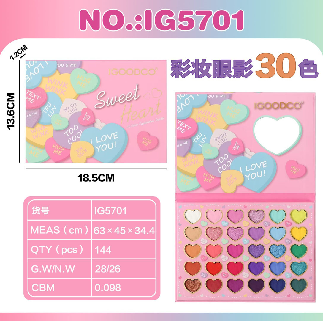 Paleta s kosmetikou pro děti starší pěti let. Sada se skládá z paletky se zrcátkem a 30 očními stíny ve tvaru srdíčka. Kosmetika byla vyrobena z materiálů bezpečných pro děti, je hypoalergenní a velmi snadno se smývá. Stačí pouze voda s přídavkem dětského koupelového gelu nebo mýdla.
