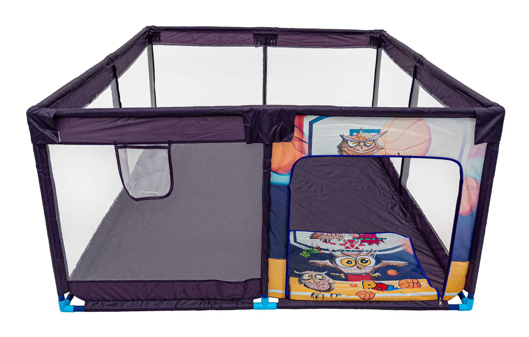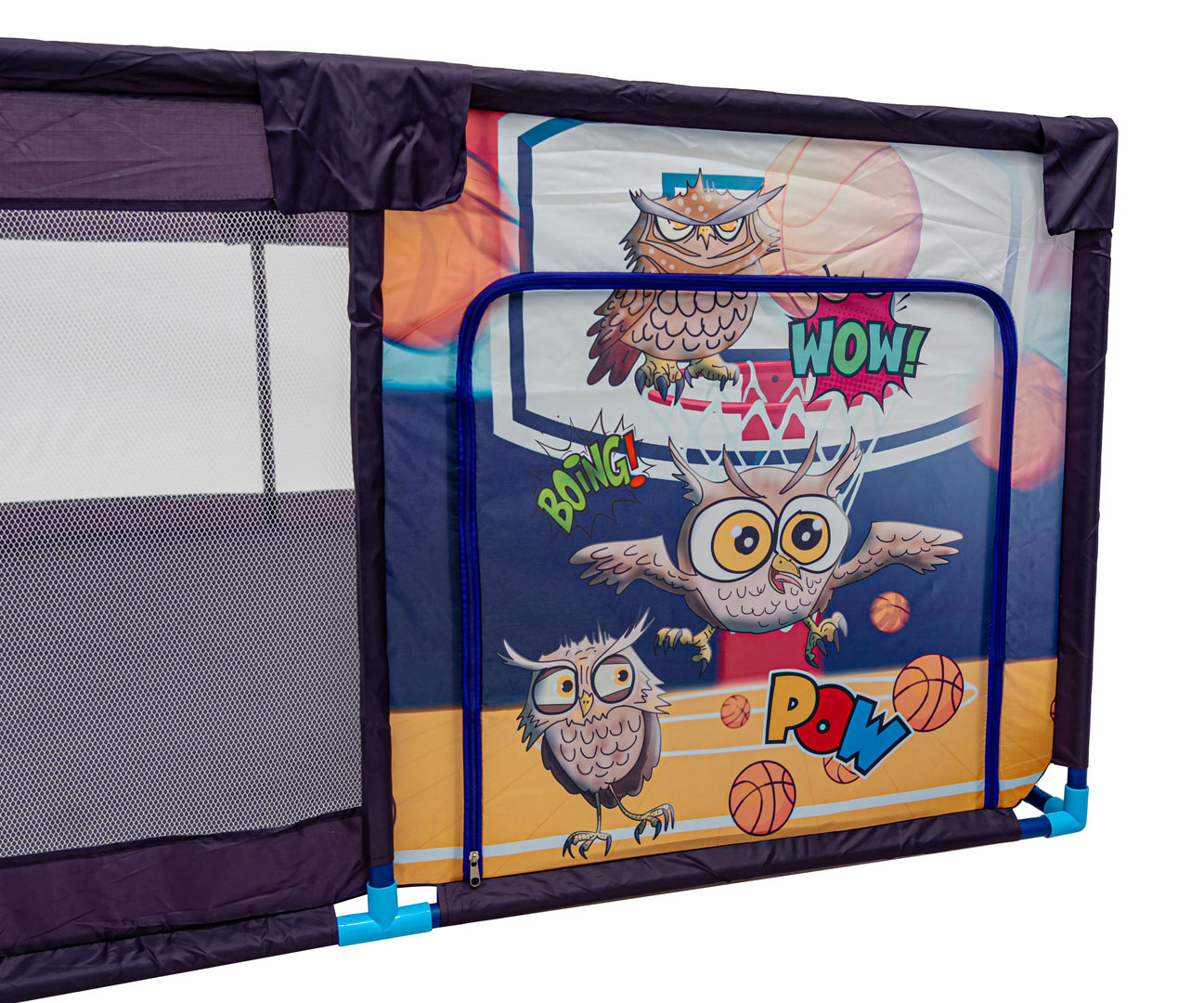 Měkká, obdélníková ohrádka pro děti od prvních dnů života. Ohrádka je lehká, díky čemuž ji lze rychle přemístit na vybrané místo. Vhodné pro použití uvnitř nebo venku. Materiál, ze kterého je vyroben, se velmi snadno čistí a dezinfikuje. Ohrádka má 4 stěny vyrobené ze síťoviny, díky čemuž můžeme snadno sledovat dítě. Stěna s veselým sloníkem má zip, díky čemuž může malý snadno vcházet a vycházet. Ohrádka je plně bezpečná pro dítě a stabilní.