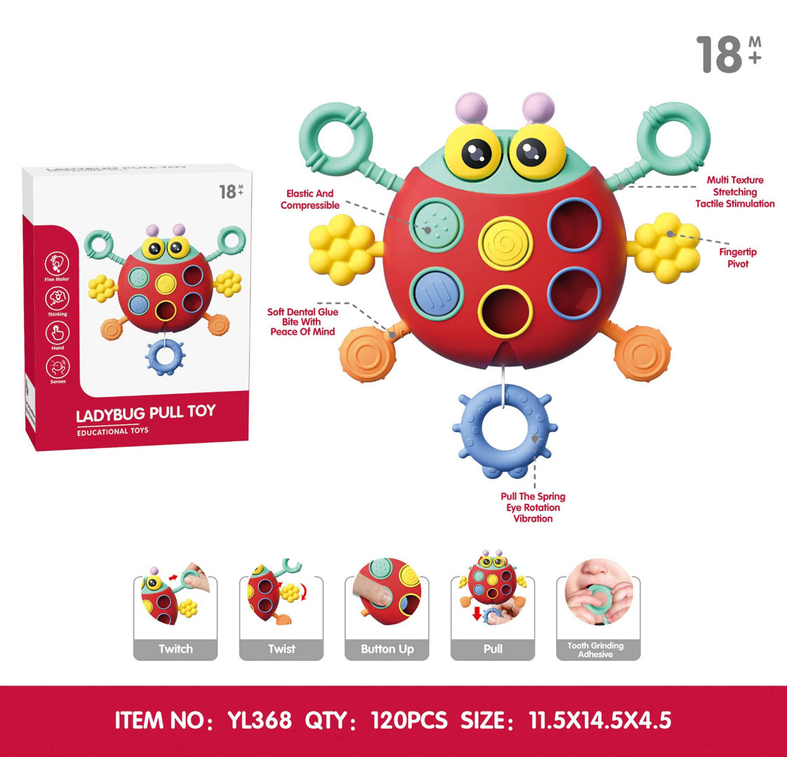 Multifunkční senzorická hračka pro děti od osmnácti měsíců věku. Hračka je vyrobena z nejkvalitnějších bezpečných materiálů v živých barvách, které přitahují pozornost dítěte a povzbuzují ho ke hře. Hračka ve tvaru berušky stimuluje dítě na mnoha úrovních. Výstupky s různou texturou jsou ideální pro kousání, prvky k tahání, posouvání a otáčení procvičují ruce a rozvíjejí kognitivní dovednosti.
