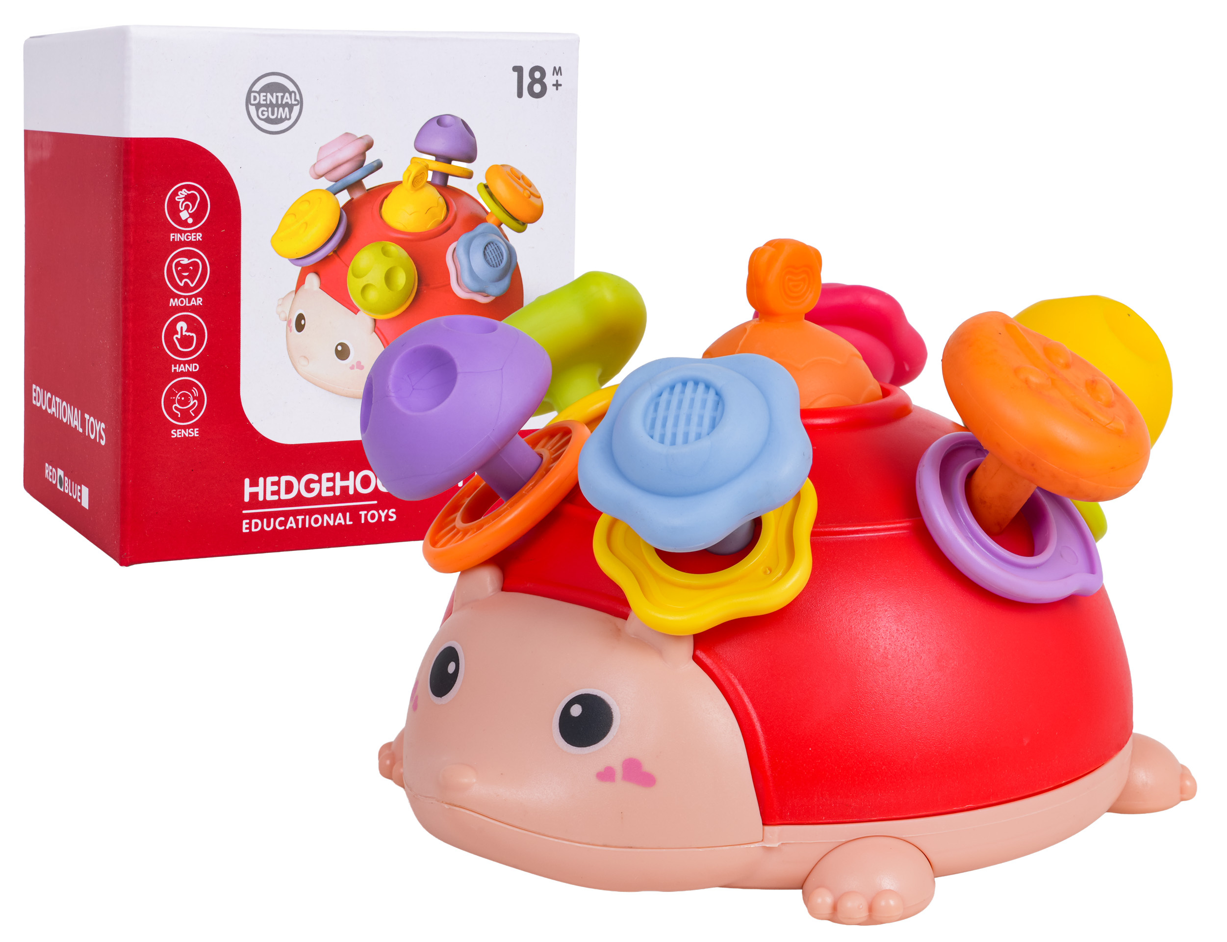 Multifunkční, senzorická, manipulační hračka pro nejmenší od osmnáctého měsíce života. Hračka je vyrobena z materiálů bezpečných pro dítě, nemá ostré hrany. Živé barvy přitahují pozornost malých dětí a povzbuzují k vzdělávací hře. Hračka nabízí dítěti mnoho možností ke hře. Výstupky na ježkovi budou užitečné při prořezávání zoubků, jsou měkké a mají různé textury. Pod výstupky se nacházejí barevné kroužky, které při zatřesení vydávají zvuk chrastění. Výstupek umístěný uprostřed horní části ježka lze tlačit a tahat, což posiluje prstíky malého dítěte. Ručky a nožky ježka jsou připevněny k tělu gumičkou, za kterou může dítě tahat. Pod ježkem se nachází spinner, který lze otáčet. Místo ocásku má ježek nit, takže ho lze zavěsit např. na postýlce.