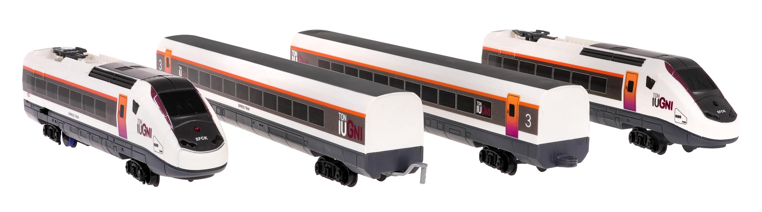 Obrovská železnice s kolejemi je vhodná pro děti od 3 let. Dráha se skládá ze dvou lokomotiv a dvou vagonů. Jedna z lokomotiv je napájena 2 bateriemi AA 1,5 V, baterie nejsou součástí balení. Vlak se rozjíždí. Během jízdy jsou slyšet charakteristické zvuky vlaku a na přední straně lokomotivy svítí červená LED dioda. Sada obsahuje skladby, které lze libovolně kombinovat. Kolejnice mají výrazný a snadný způsob připojení, takže jsou bezpečné a robustní pro použití. vláček i koleje jsou vyrobeny z nejkvalitnějšího plastu, který zajišťuje dlouhou životnost a odolnost jednotlivých prvků sady.