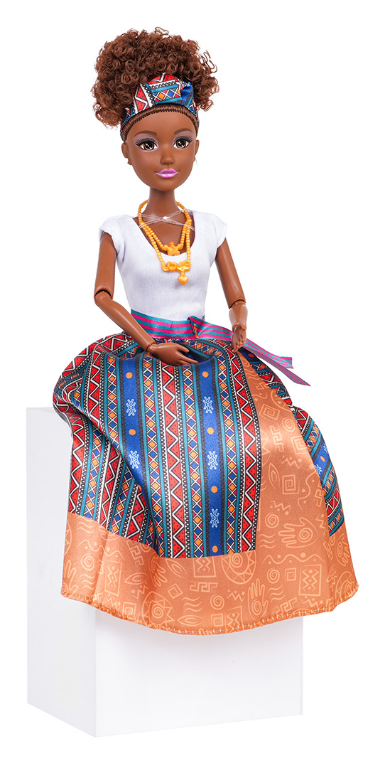 Panenka Olga v krásných šatech pro děti od tří let. Panenka byla vyrobena s důrazem na detaily z nejkvalitnějších materiálů. Panenka je oblečená v šatech a botách na podpatku. Na krku má krásné korále a na uších náušnice. Ruce a nohy panenky můžeme libovolně uspořádat, což usnadňuje ztvárnění panenky v různých rolích.
