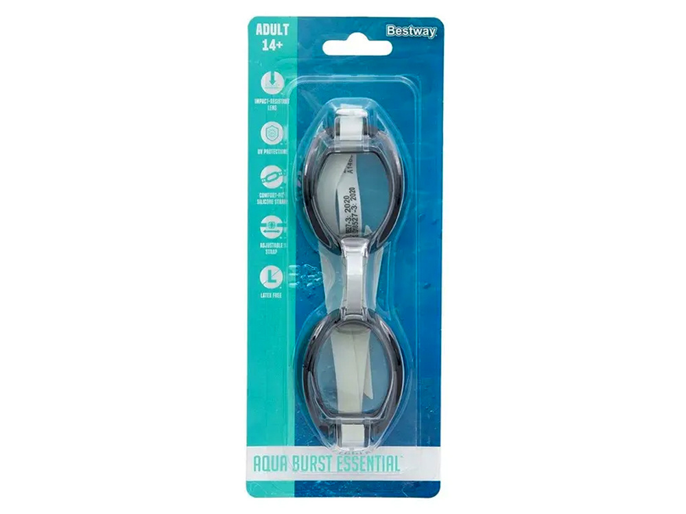 Brýle Bestway®Aqua Burst Essential se vám jistě budou hodit při prvních lekcích plavání. Jsou navrženy pro pohodlí a bezpečnost při aktivitách v bazénu. Čočky brýlí jsou vyrobeny z odolného polykarbonátu, takže jsou odolné proti nárazu. brýle navíc chrání před UV zářením díky speciálnímu povlaku. Nastavitelný nosní můstek a silikonový pásek umožňují individuální přizpůsobení brýlí hlavě uživatele při každém plavání.Ideální pro dospělé a děti starší 14 let.