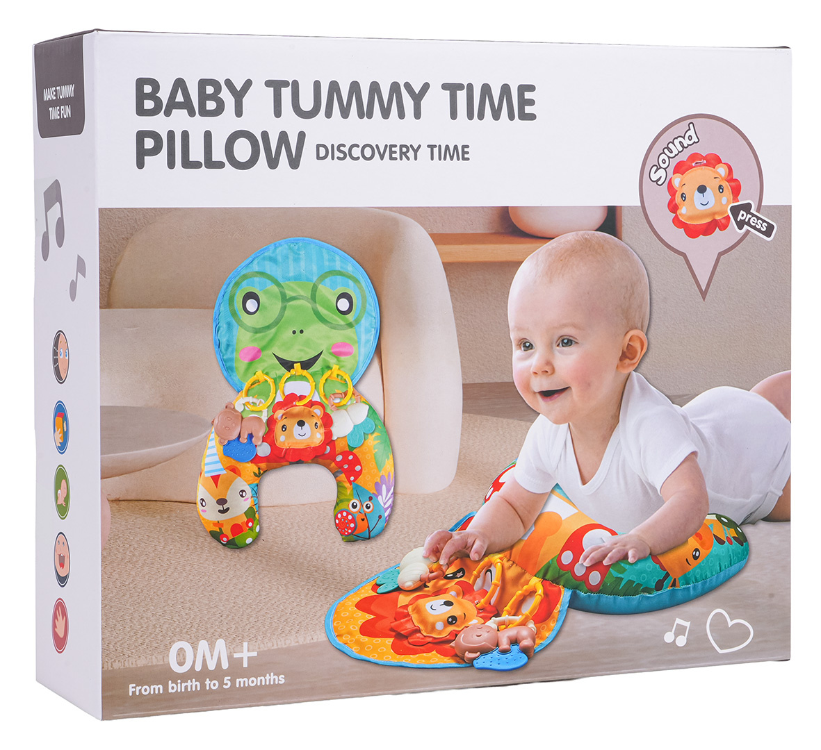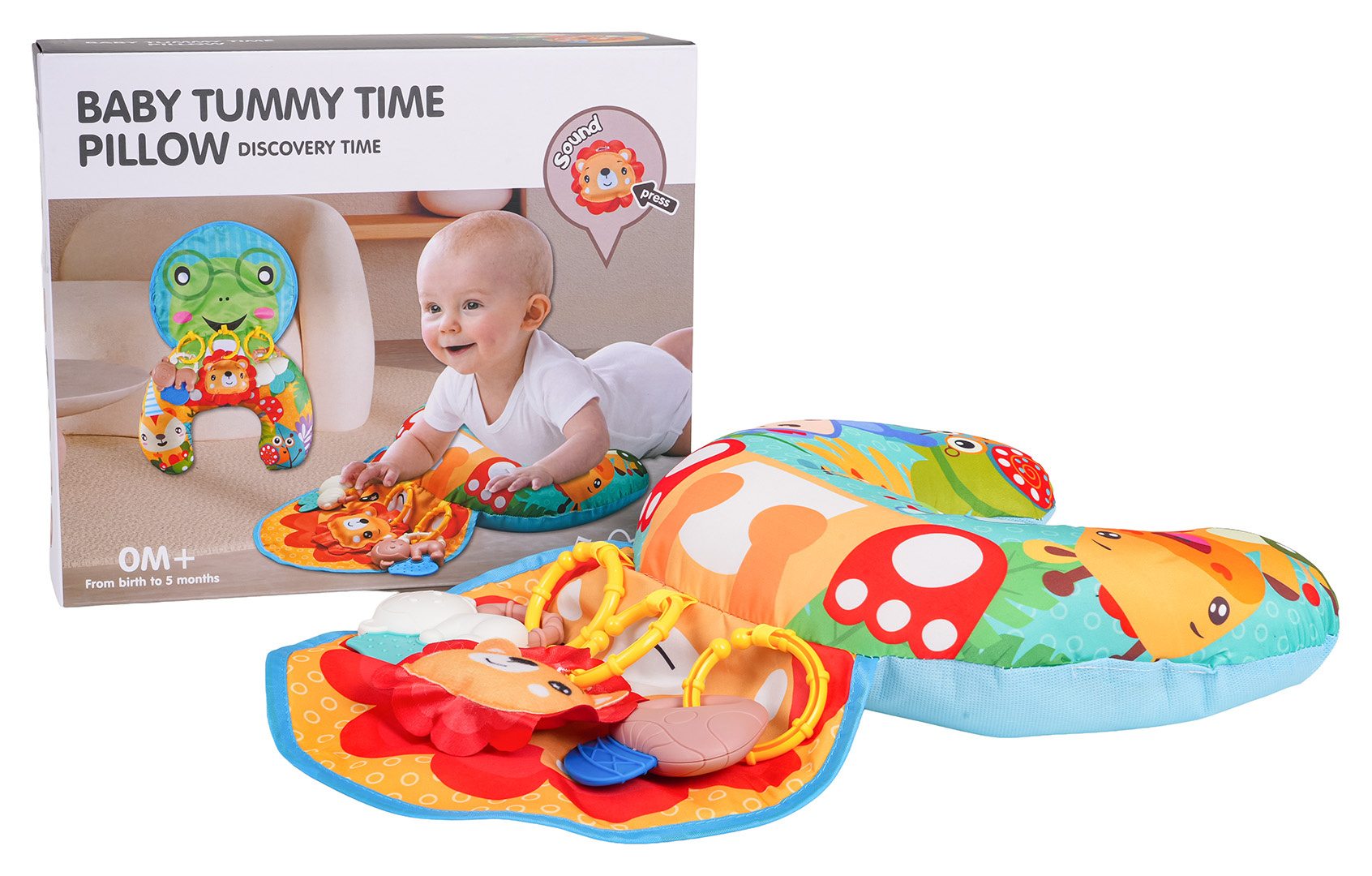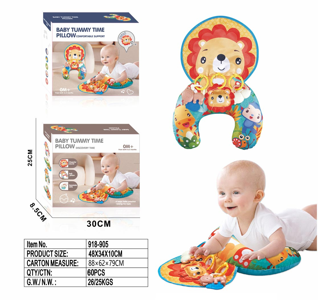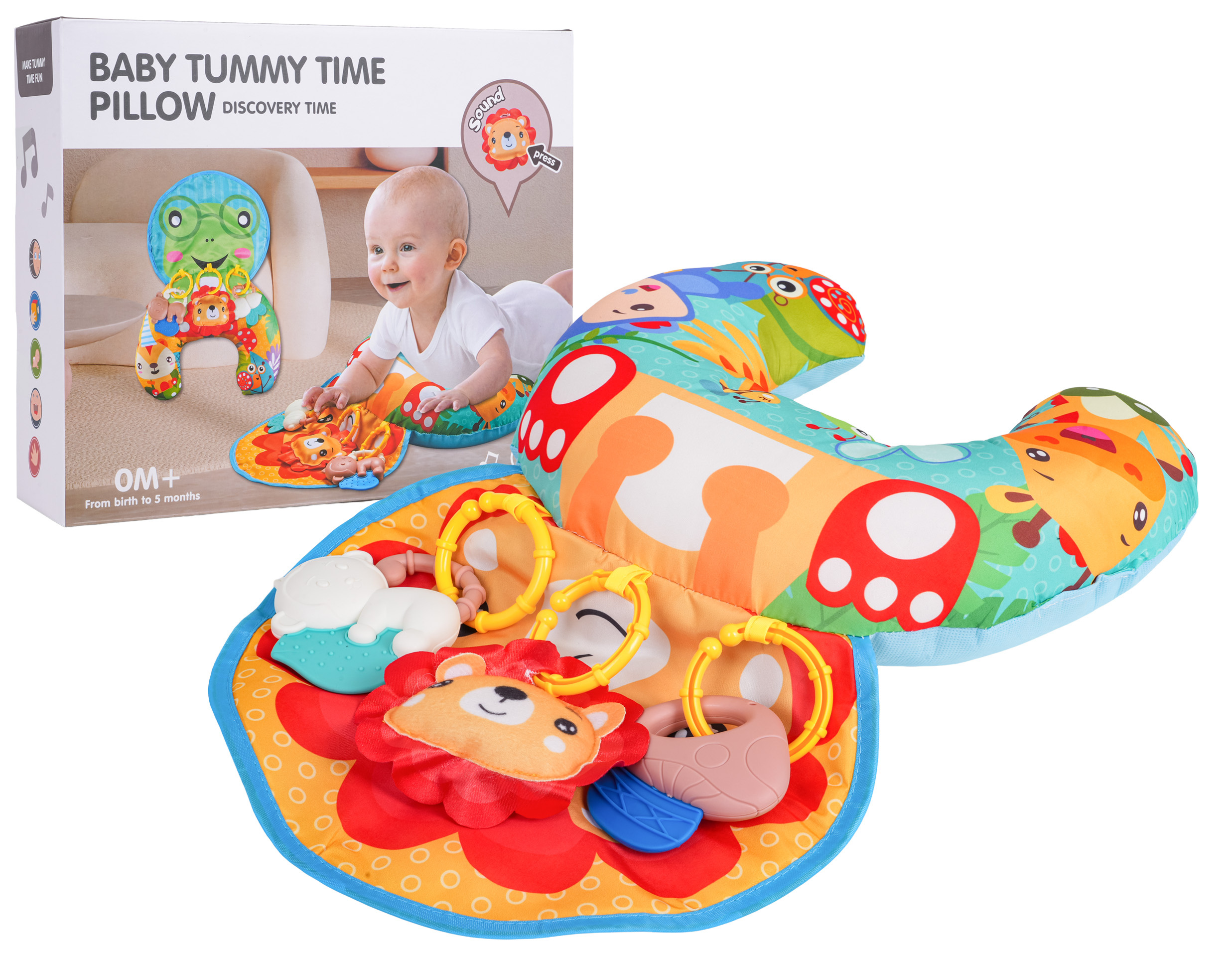 Multifunkční senzorický polštář, podkova s přívěsky pro miminka od prvních dnů života. Polštář byl vyroben z nejkvalitnějších materiálů bezpečných pro nejmenší, je měkoučký a barevný. Má 3 odnímatelné závěsné hračky, které lze také připevnit k postýlce nebo kočárku. V první fázi života bude ideální pro položení miminka na bříško. Pro sedící dítě bude ideální oporou, později může sloužit jako podkova do autosedačky.