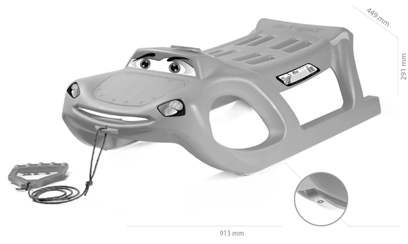 Sáně jsou vyrobené z vysoce odolného plastu a opatřené ocelovými skluznicemi, které zajišťují perfektní skluz po sněhu.