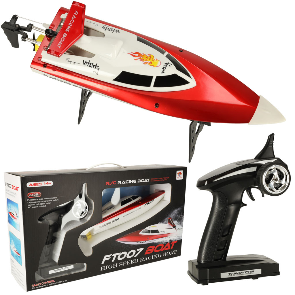 Ovladač řízení motorového člunu je ve tvaru pistole, což umožňuje pohodlné ovládání člunu. Pro zkušenější závodníky má ovladač mnoho pokročilých nastavení, která pomáhají s přesným ovládáním lodi.Samotné ovládání je velmi jednoduché, takže tento model lze dětem rozhodně doporučit. Motorový člun je řízen rádiem na frekvenci 2,4 GHz, což dává velký dosah až 150 m a umožňuje neomezené přeplavání vod.
