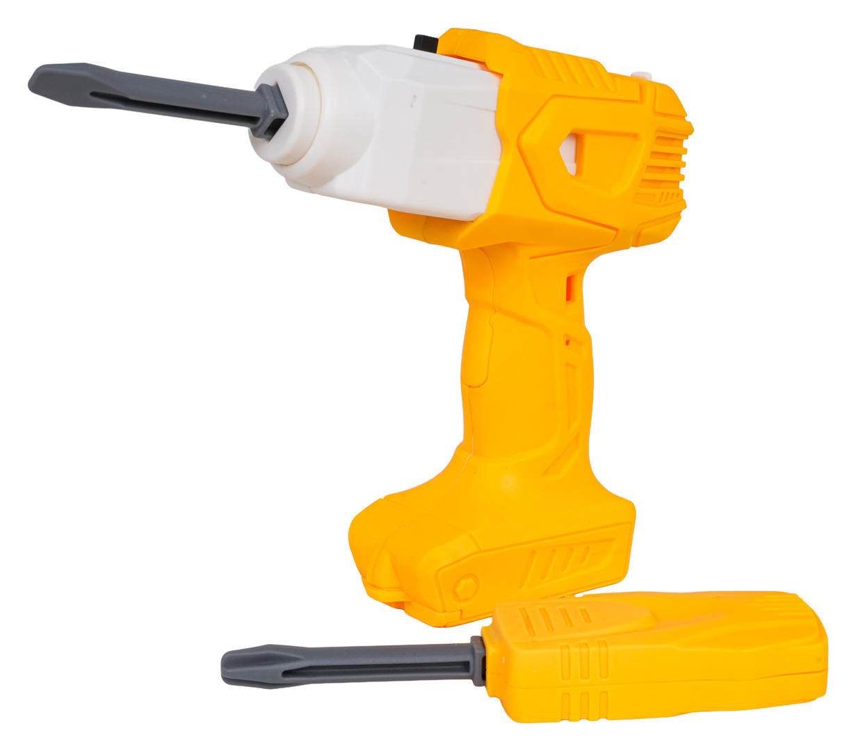 Interaktivní stavební vozidlo pro děti od tří let s příslušenstvím v sadě. Vozidlo obdržíme smontované a kompletní, můžeme ho rozložit na jednotlivé části pomocí přiloženého šroubováku nebo aku vrtačky. Šroubovák je manuální, zatímco aku vrtačka je na baterie. Vrtačka má vyjímatelný panel, pokud tento panel přemístíme do vozidla, bude se pohybovat dopředu a dozadu. Hračka má pohyblivé části, jako je přívěs nebo střecha vozidla. Hračka byla vyrobena z nejkvalitnějších materiálů, v živých barvách. Ovládací panel je napájen bateriemi typu 2 x AA 1,5 V (nejsou součástí balení).