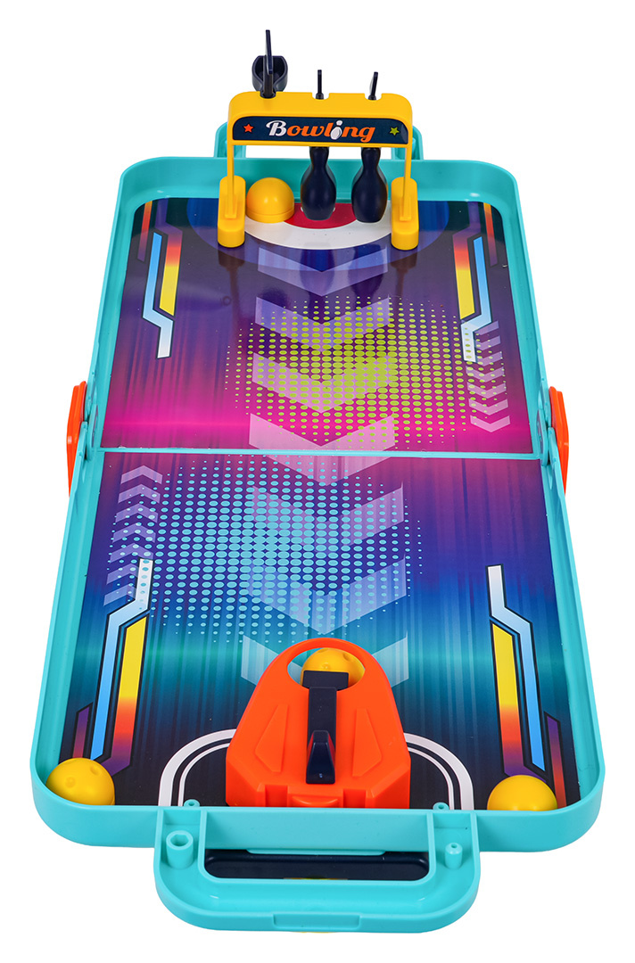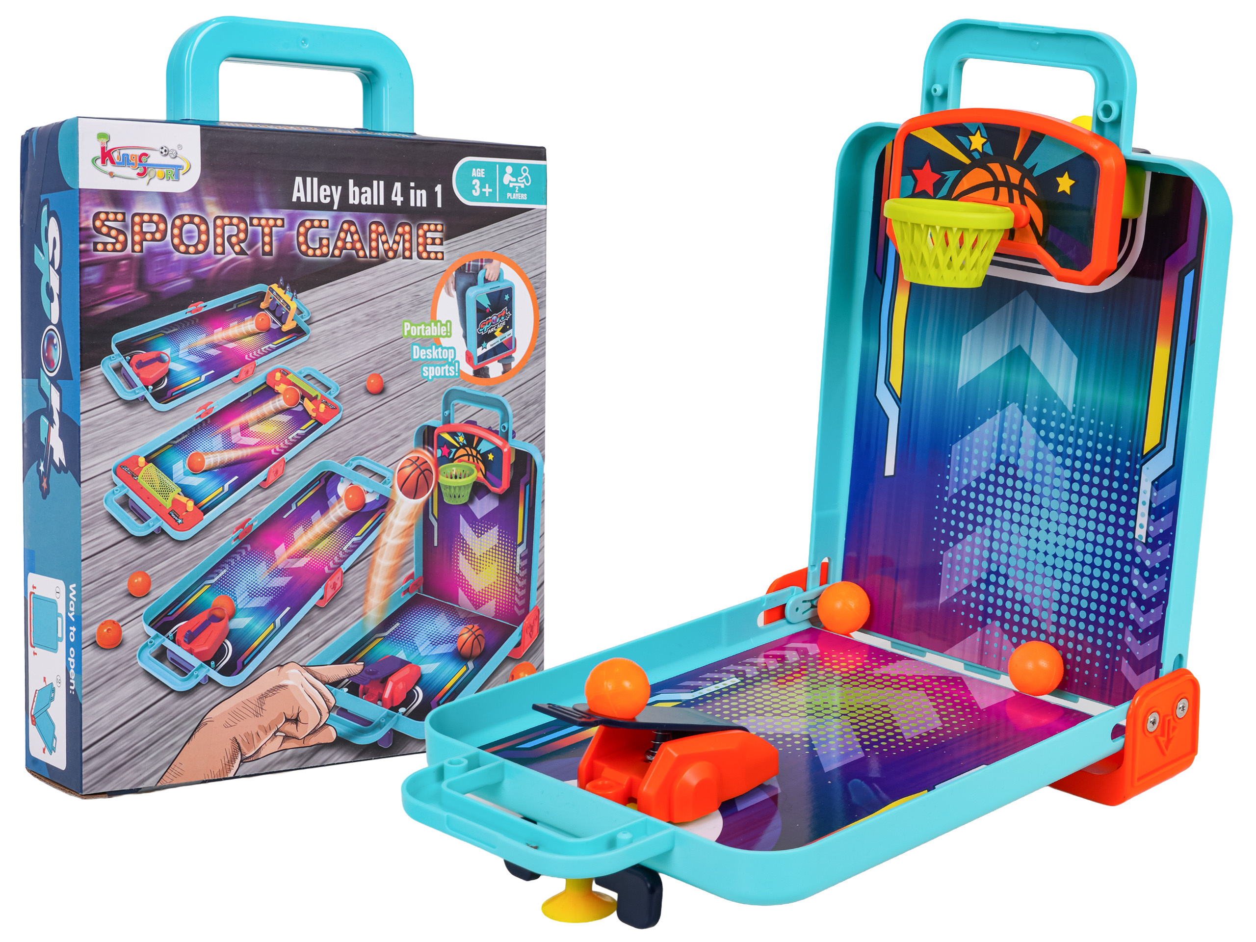 Sada dovednostních her 4 v 1 pro děti od tří let. Tato malá sada, navržená jako kompaktní kufřík, kombinuje až 4 hry: air hockey, kuželky, basketbal a flipper. Díky malým rozměrům lze sadu vzít kamkoli s sebou a užívat si vzrušující zábavu, kdekoli jen chceš. Sada je vyrobena z nejkvalitnějších materiálů v živých barvách. Hra zlepšuje zrakově-motorickou koordinaci, koncentraci a motorické dovednosti.