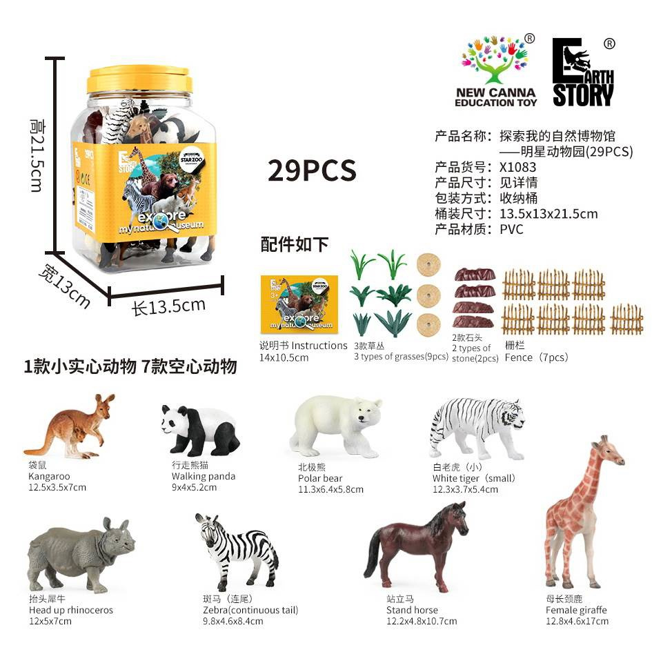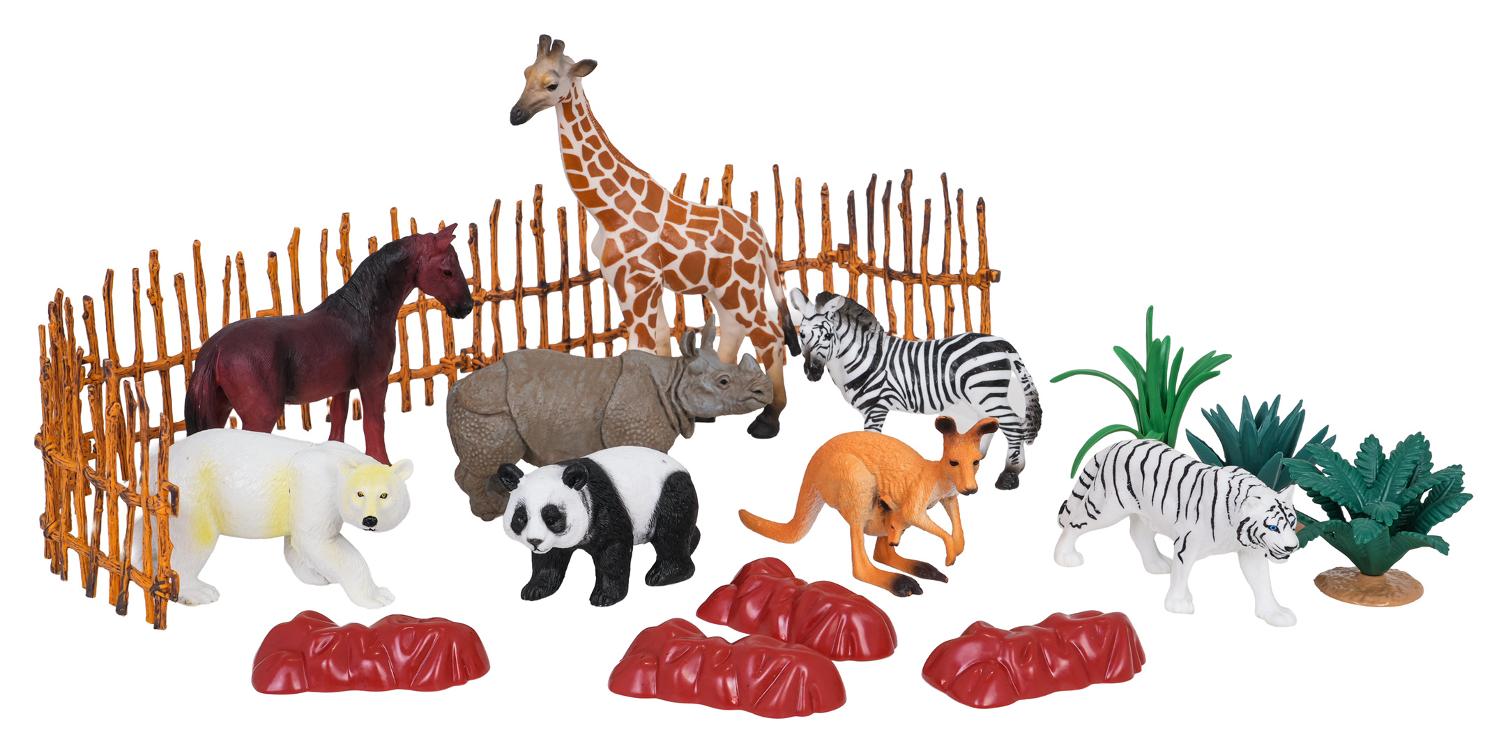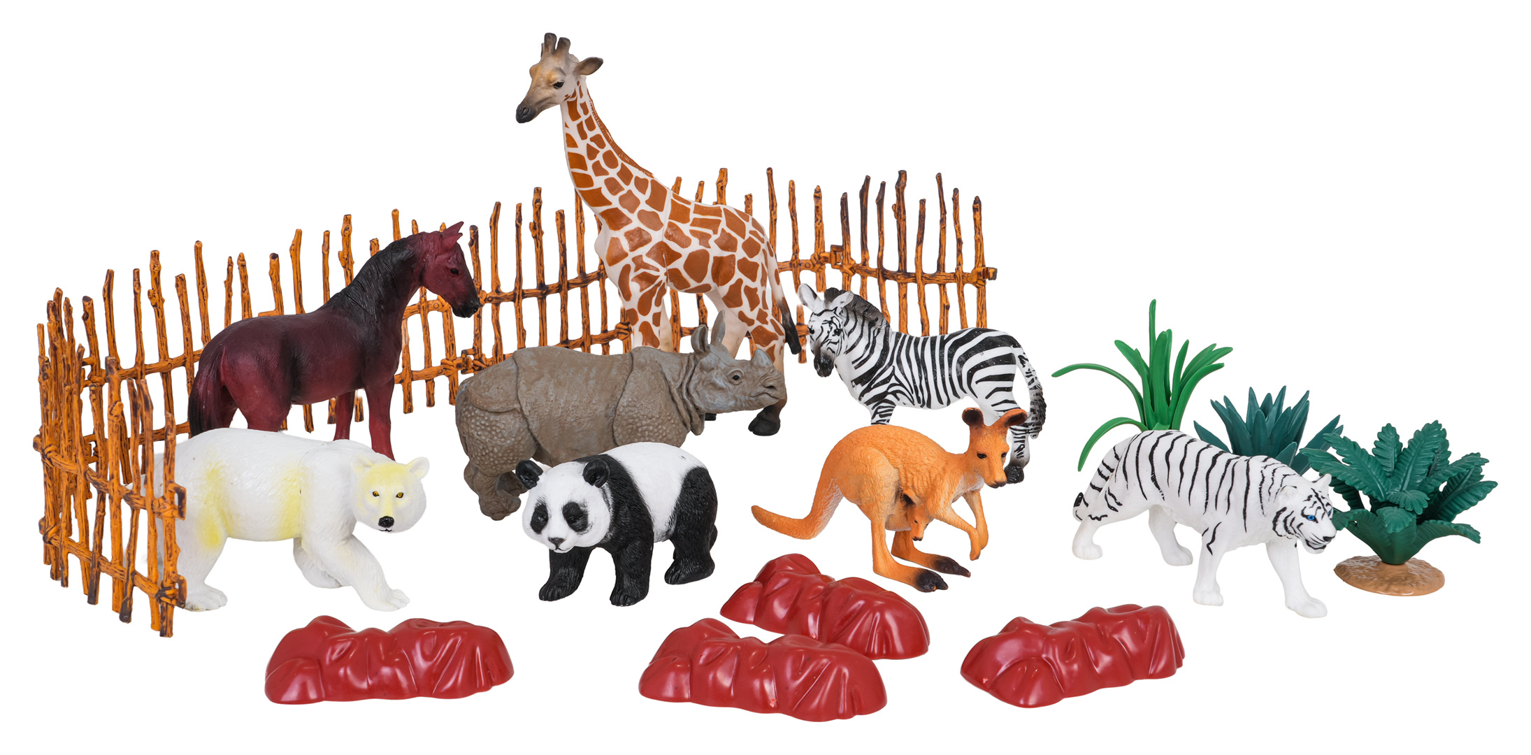 - figurky: klokan, panda, lední medvěd, tygr, nosorožec, zebra, kůň, žirafa,