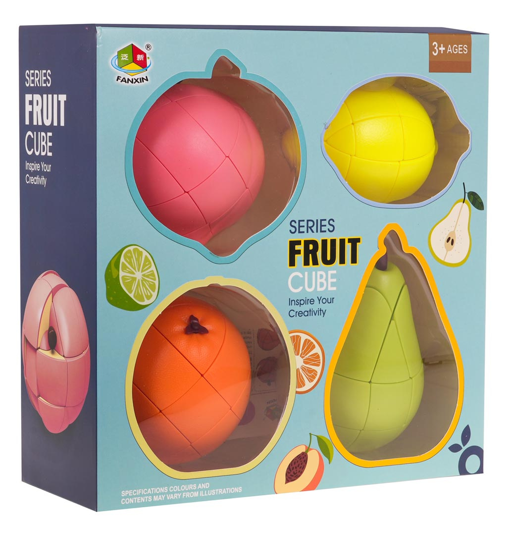 Sada logických skládaček ve tvaru ovoce pro děti od 3 let. Elementy ovoce se otáčejí na každou stranu. Je třeba zamíchat prvky a poté se je pokusit znovu uspořádat do tvaru ovoce. Není to navzdory zdání snadný úkol. Skládání rozvíjí pohybově-myšlenkové schopnosti, manuální dovednosti a učí logickému myšlení.