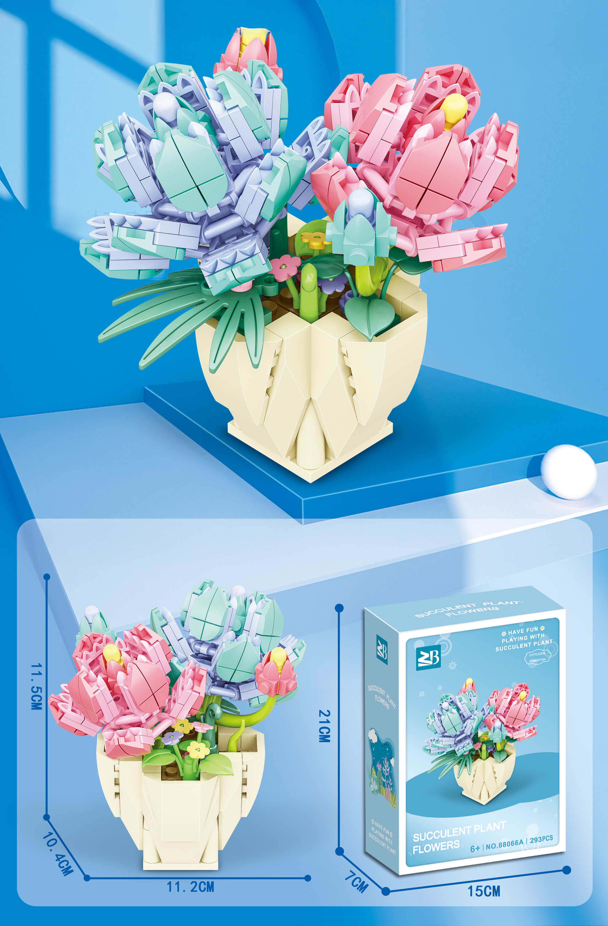 Vysoce kvalitní stavební kostky pro děti od šesti let. Sada se skládá z 293 prvků, ze kterých lze postavit květiny v květináči, a pak je darovat blízké osobě nebo je použít jako dekoraci. Tato nádherná kompozice květin vytvořená z kostek jistě upoutá pozornost svými detaily.