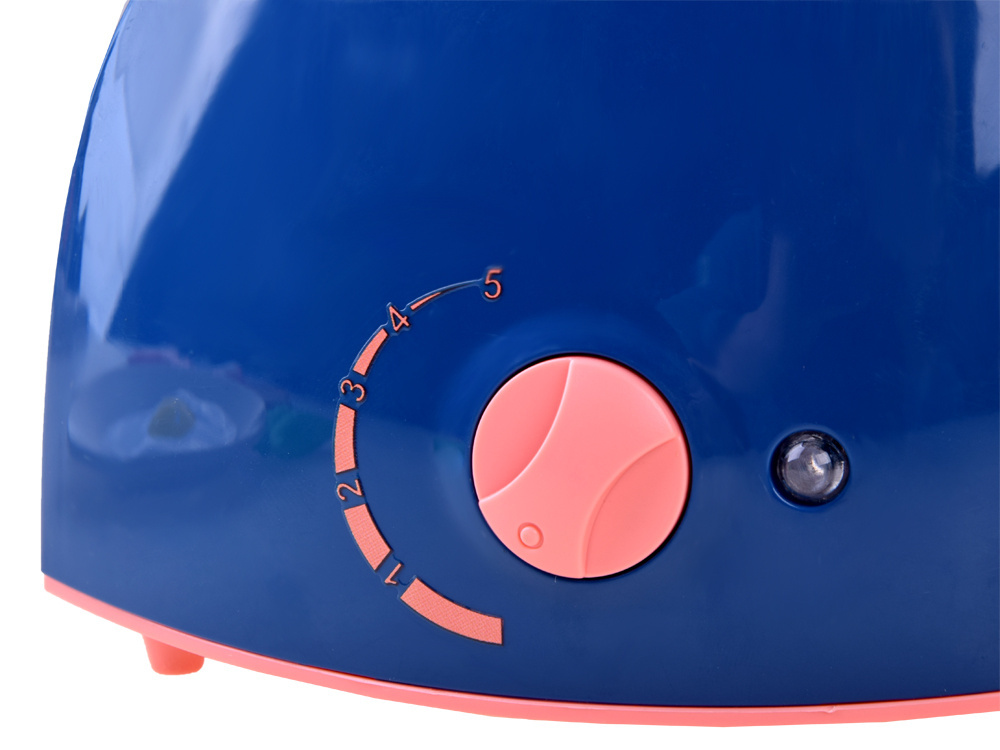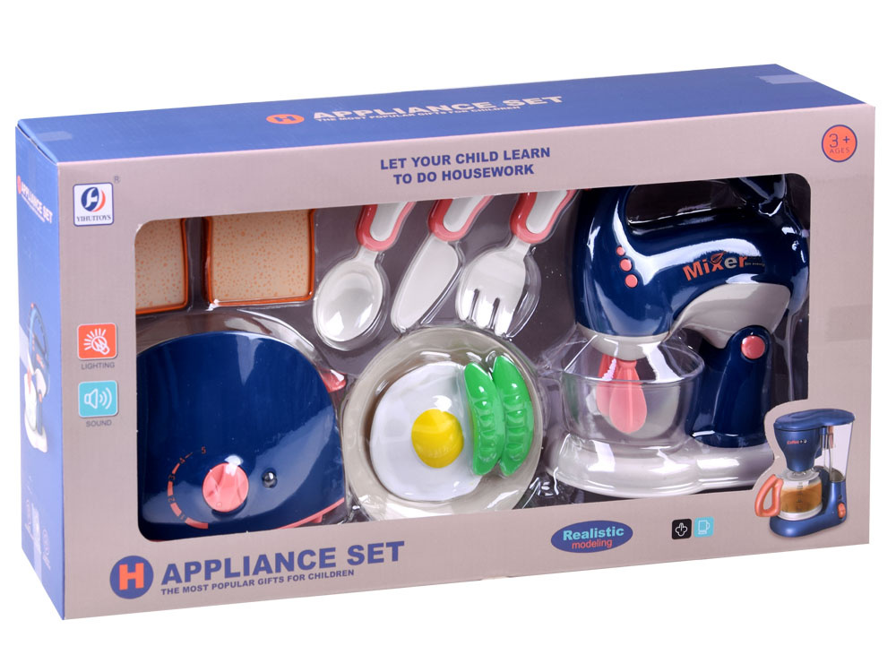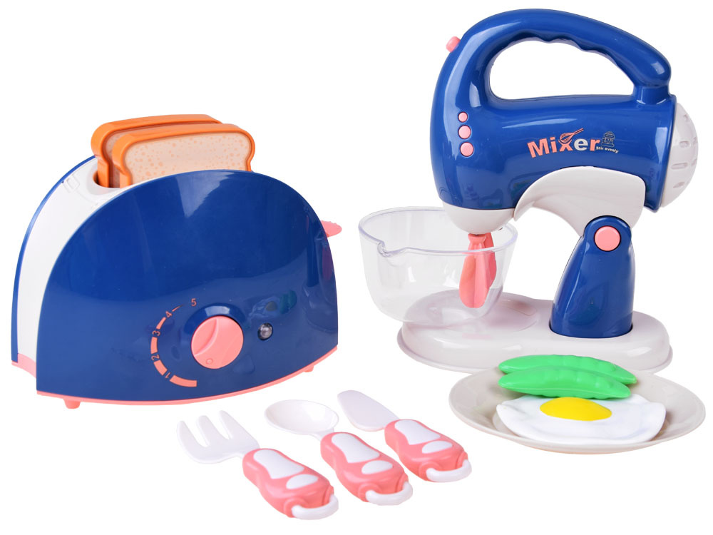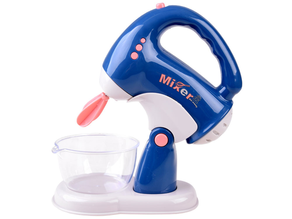 Mixér je stejně jako topinkovač vyroben výhradně z plastu, v příjemné jemné barvě, která se jistě hodí do každé kuchyně, je napájen z baterií (prostor pro baterie najdeme v mixéru na spodní straně po vyjmutí ze stojanu). Během provozu se rozsvítí kontrolka LED signalizující, že zařízení pracuje. Hračky vydávají realistický zvuk. Mixér je dodáván s podstavcem, takže se malí pečovatelé budou moci odtrhnout, když si náhodou začnou připalovat toasty.