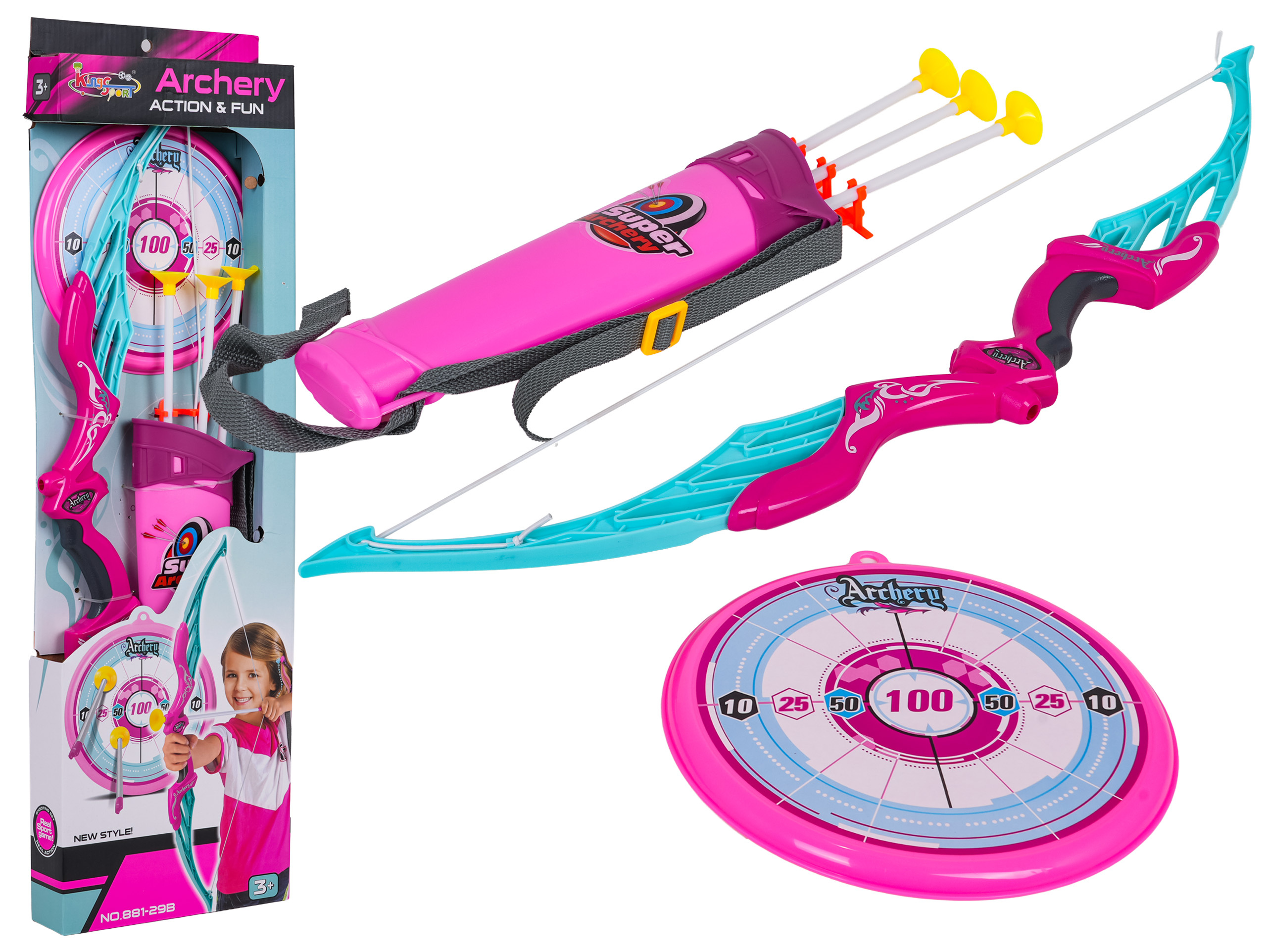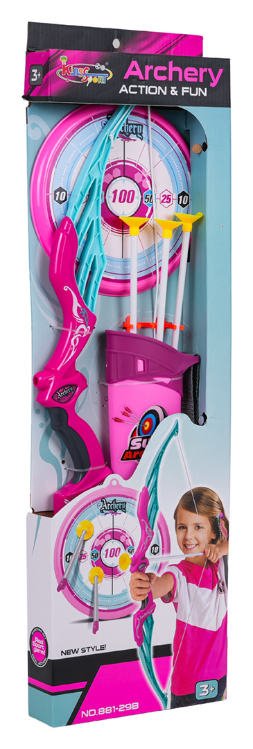 Sada luk, šípy, terč pro děti od tří let. Luk je velmi jednoduchý na použití, stačí umístit šíp mezi zaměřovač a tětivu, zamířit na cíl a vystřelit. Hra se sadou učí preciznosti a soustředění, je to také skvělý trénink svalů ramen a zad.