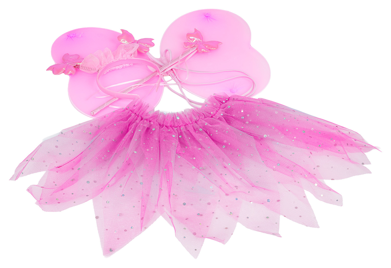 Sada motýlích křídel, sukýnka, hůlka, čelenka pro děti od tří let. Sada byla vyrobena s důrazem na detaily v živých barvách. Bude ideální na ples, představení nebo pro každodenní zábavu. Křidélka jsou upevněna na elastických ramínkách, díky čemuž jsou pohodlná na nošení a nespadnou během hry. Krásná tylová sukně má v pase gumu.