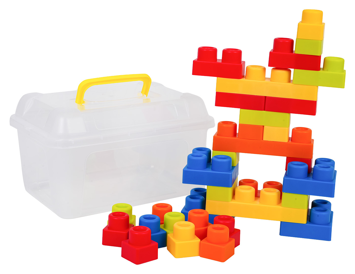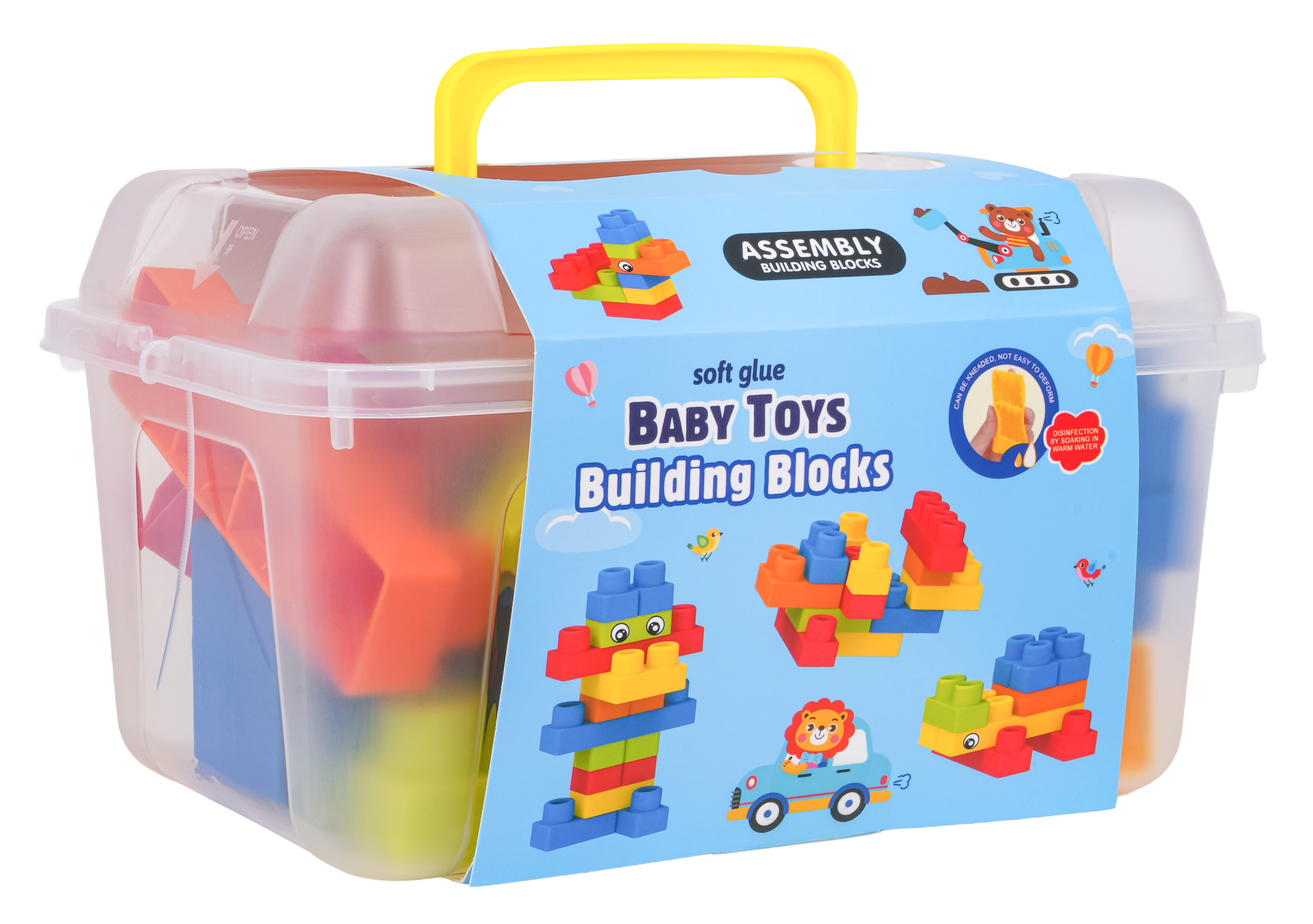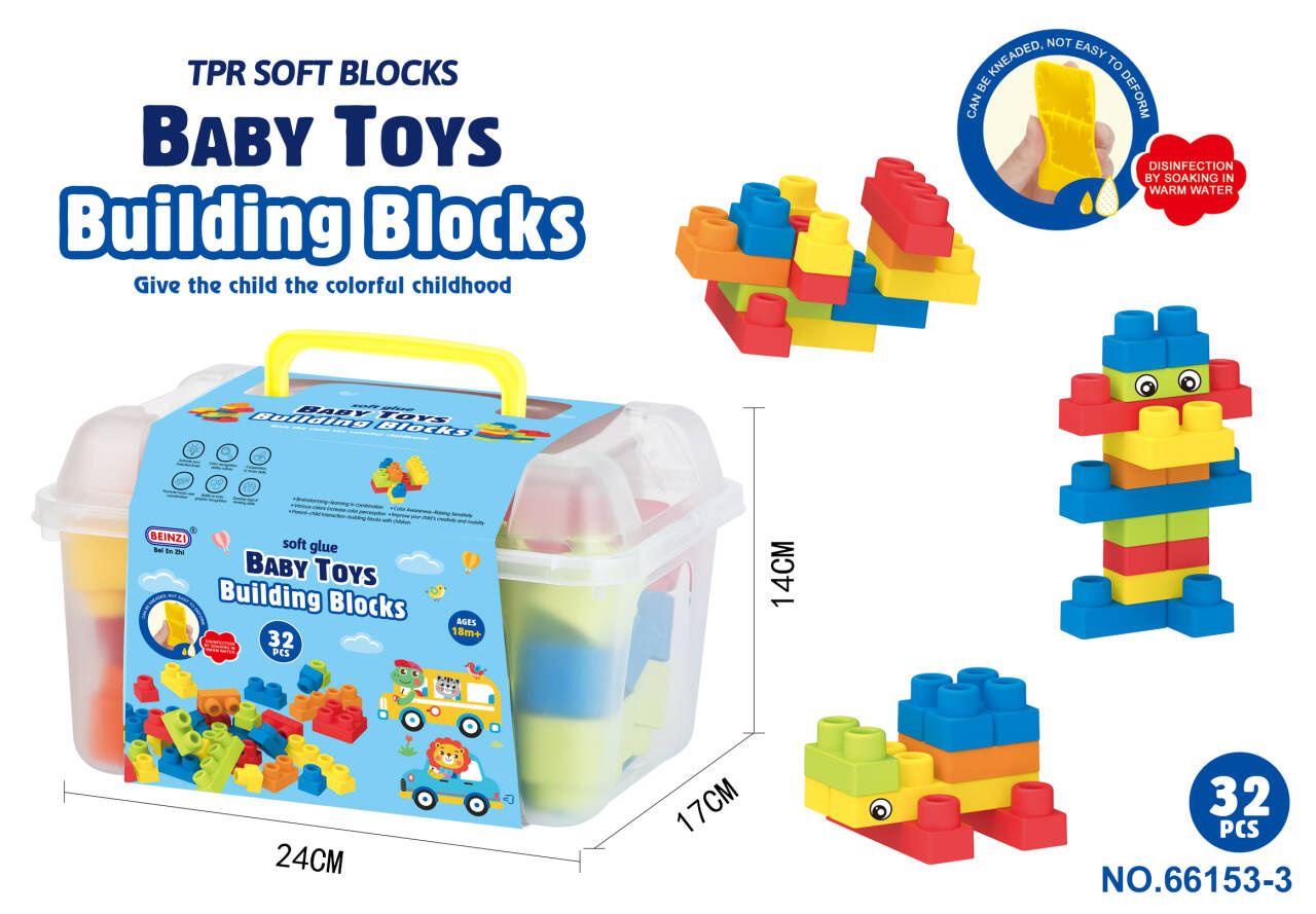 Sada barevných měkkých kostek s kufříkem pro děti od osmnácti měsíců. Sada je vyrobena z materiálu PVC, který je bezpečný pro děti i životní prostředí. Kostky jsou lehké a nemají ostré hrany. Velmi snadno se udržují v čistotě, po vyvaření neztrácejí barvy. Knedlíčky můžeme libovolně ohýbat, a po ohnutí se vracejí do svého předchozího tvaru.