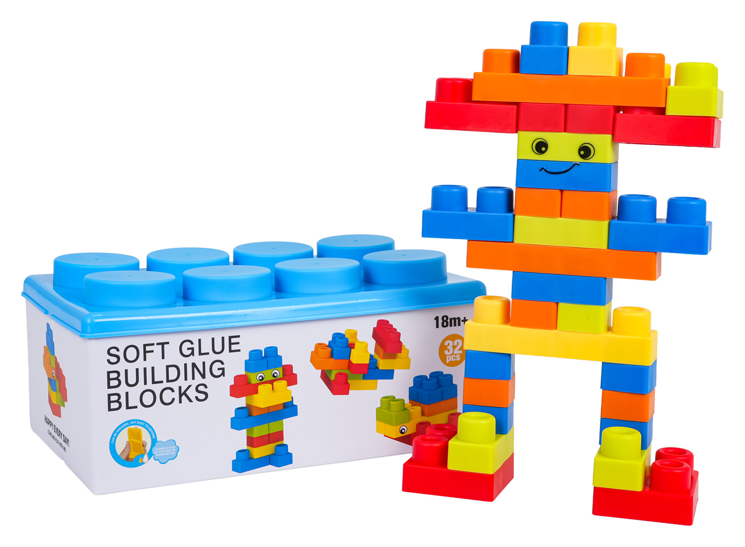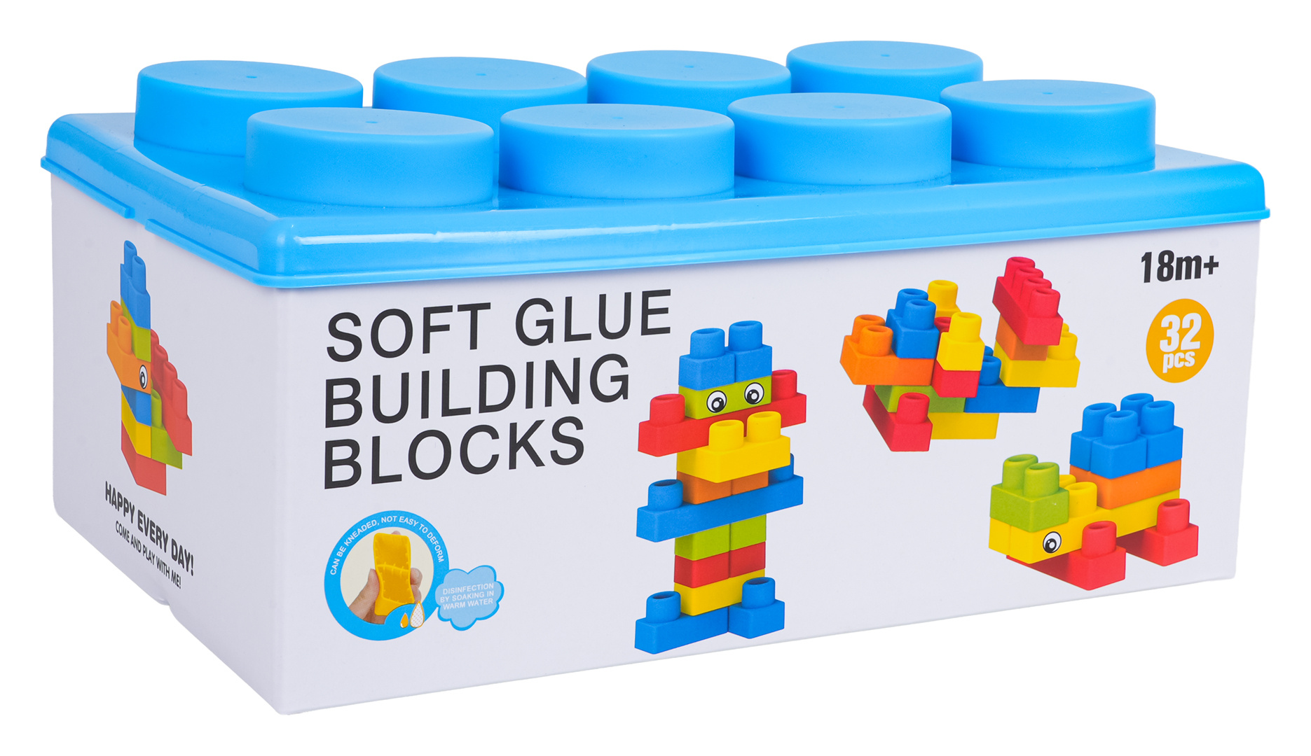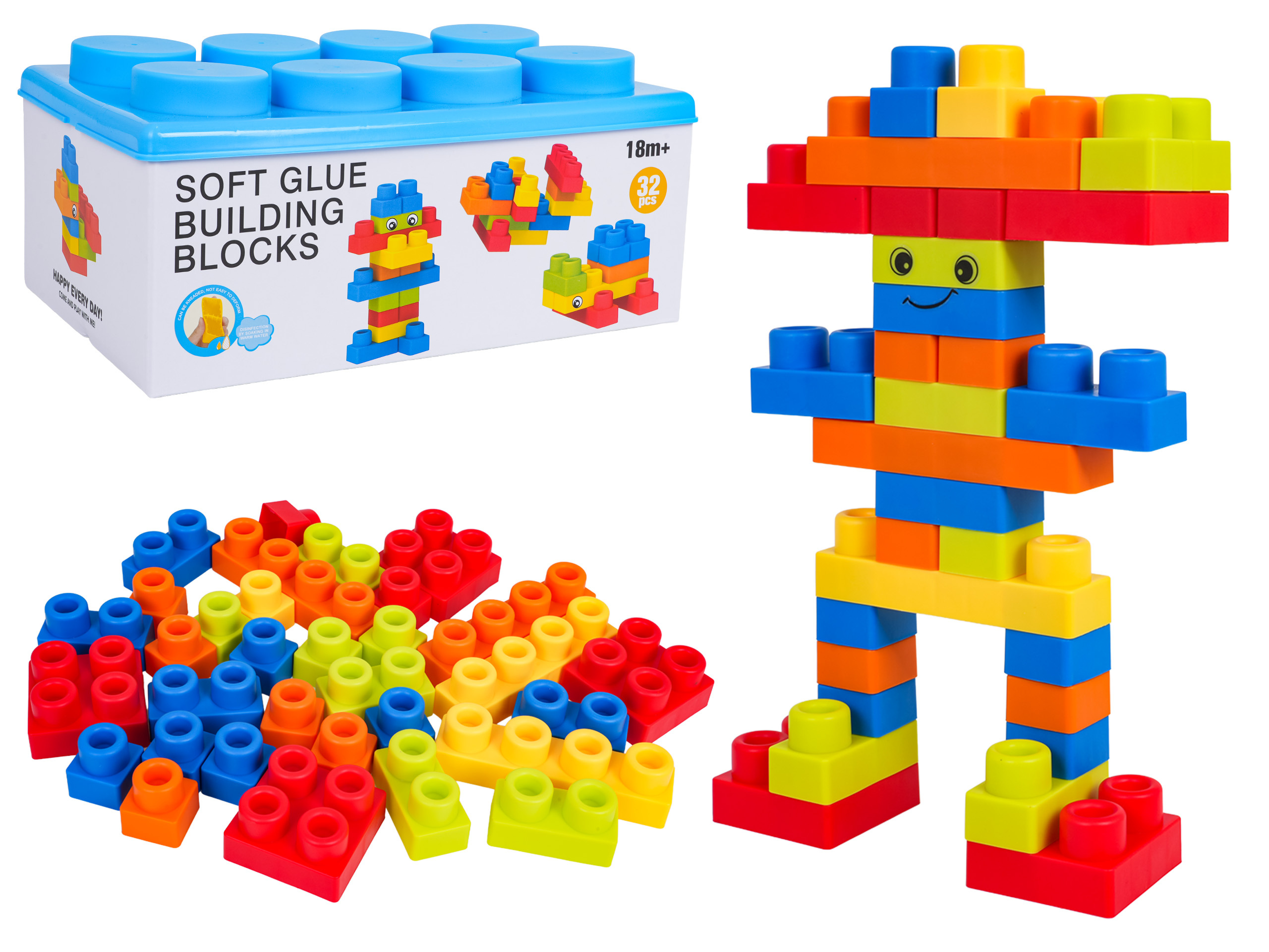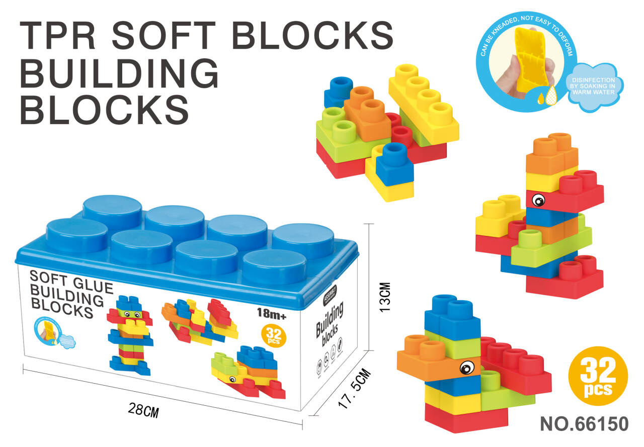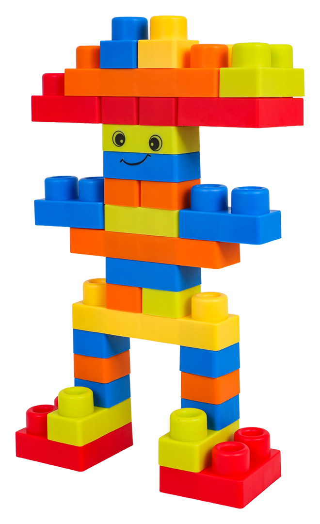 Sada barevných měkkých kostek pro děti od osmnácti měsíců věku. Sada je vyrobena z materiálu PVC, který je bezpečný pro děti i životní prostředí. Kostky jsou lehké a nemají ostré hrany. Velmi snadno se udržují v čistotě, po vyvaření neztrácejí barvy. Knedlíčky můžeme libovolně ohýbat, a po ohnutí se vracejí do svého předchozího tvaru.