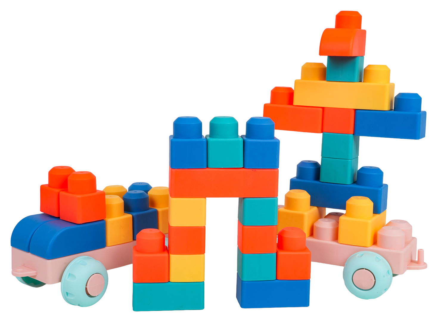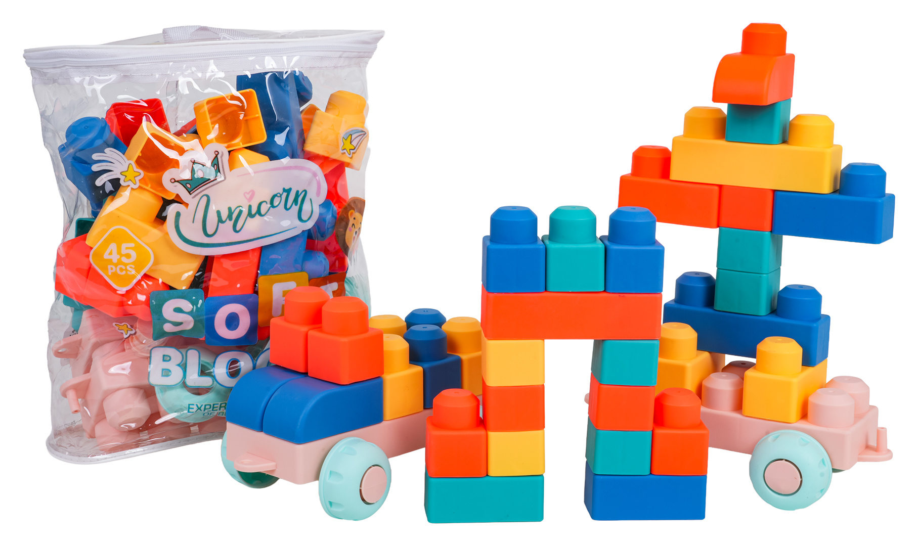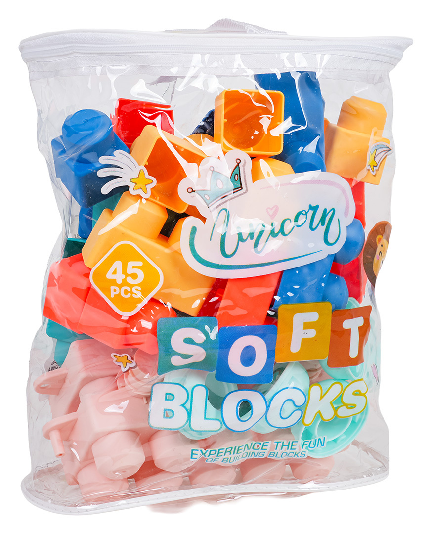 Sada barevných měkkých kostek pro děti od tří let. Sada je vyrobena z materiálu PVC, který je bezpečný pro děti i životní prostředí. Kostky jsou lehké a nemají ostré hrany. Velmi snadno se udržují v čistotě, po vyvaření neztrácejí barvy. Knedlíčky můžeme libovolně ohýbat, a po ohnutí se vracejí do svého předchozího tvaru.