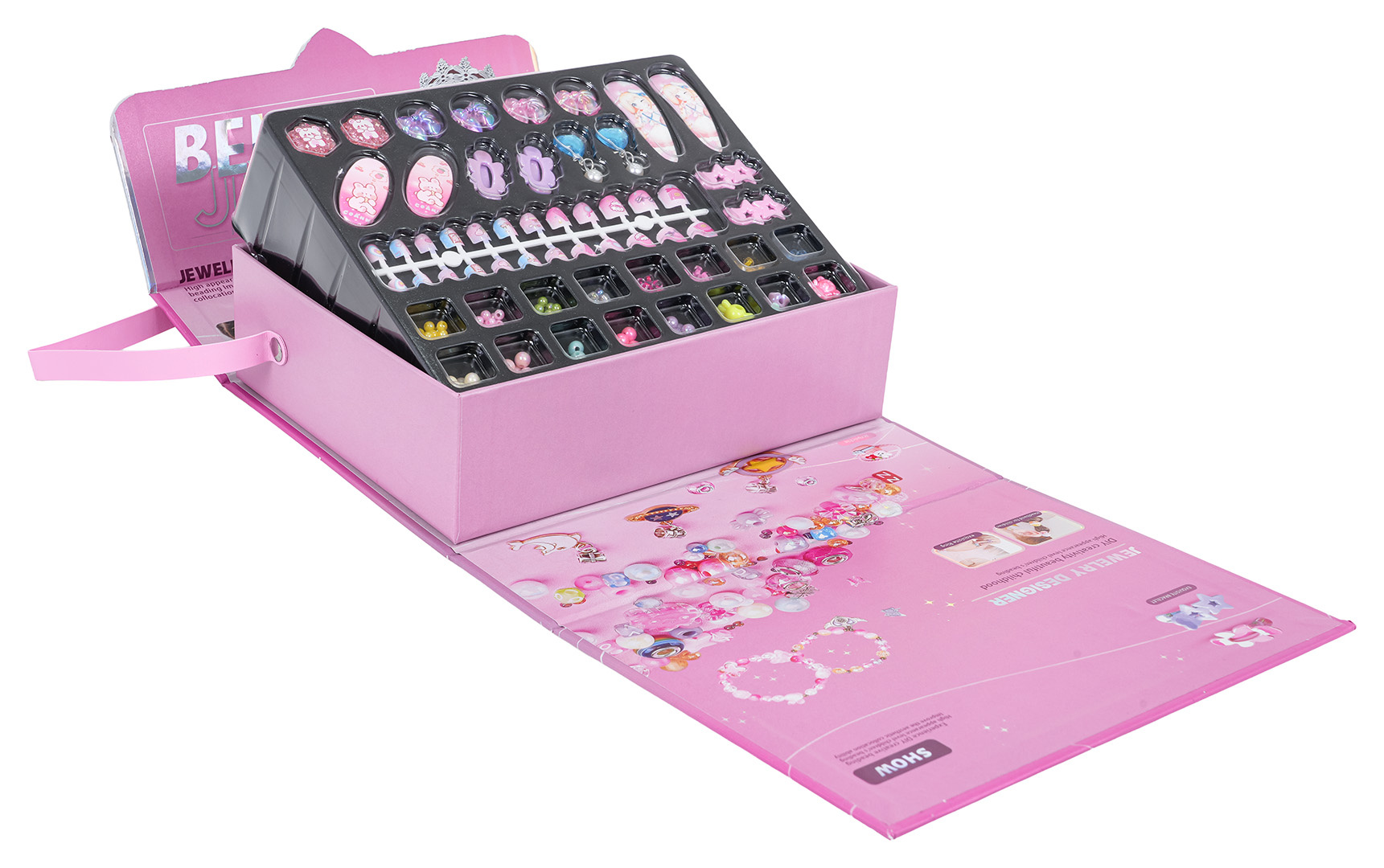Kreativní, luxusní sada na výrobu šperků v kabelce pro děti od tří let. V sadě najdeme: korálky, sponky do vlasů, náušnice, prstýnky a umělé nehty. S touto sadou vaše dítě vytvoří jedinečné šperky, výjimečné, jedinečné svého druhu. Sada posiluje kreativitu, motorické dovednosti, procvičuje prsty rukou. Krásná taštička jako balení umožní vzít si sadu kamkoliv s sebou.