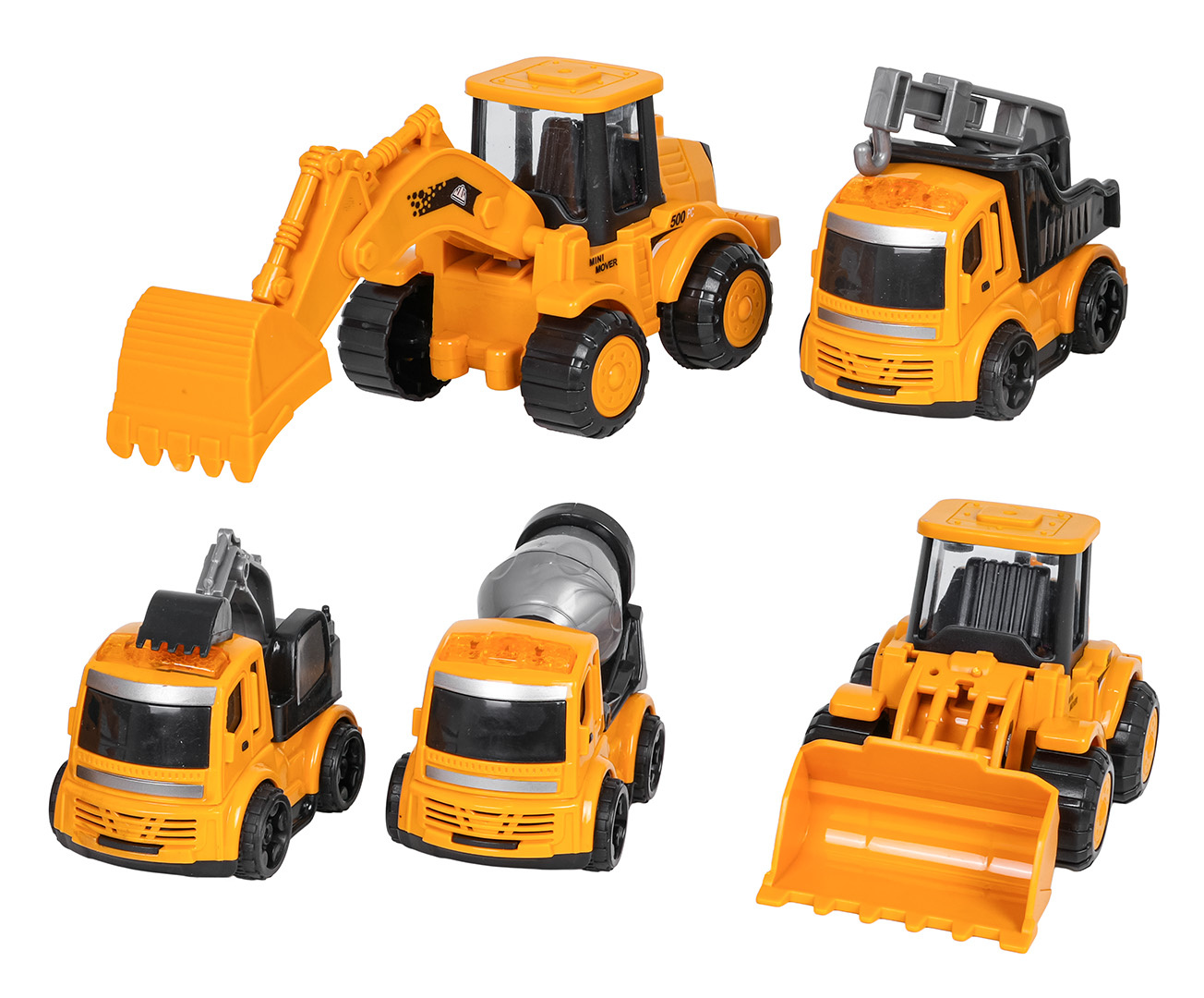 Sada 5 stavebních vozidel pro děti od tří let. Vozidla byla vyrobena z nejkvalitnějších materiálů s důrazem na detaily a mají pohyblivé prvky. Ideální sada pro hraní doma nebo na čerstvém vzduchu.