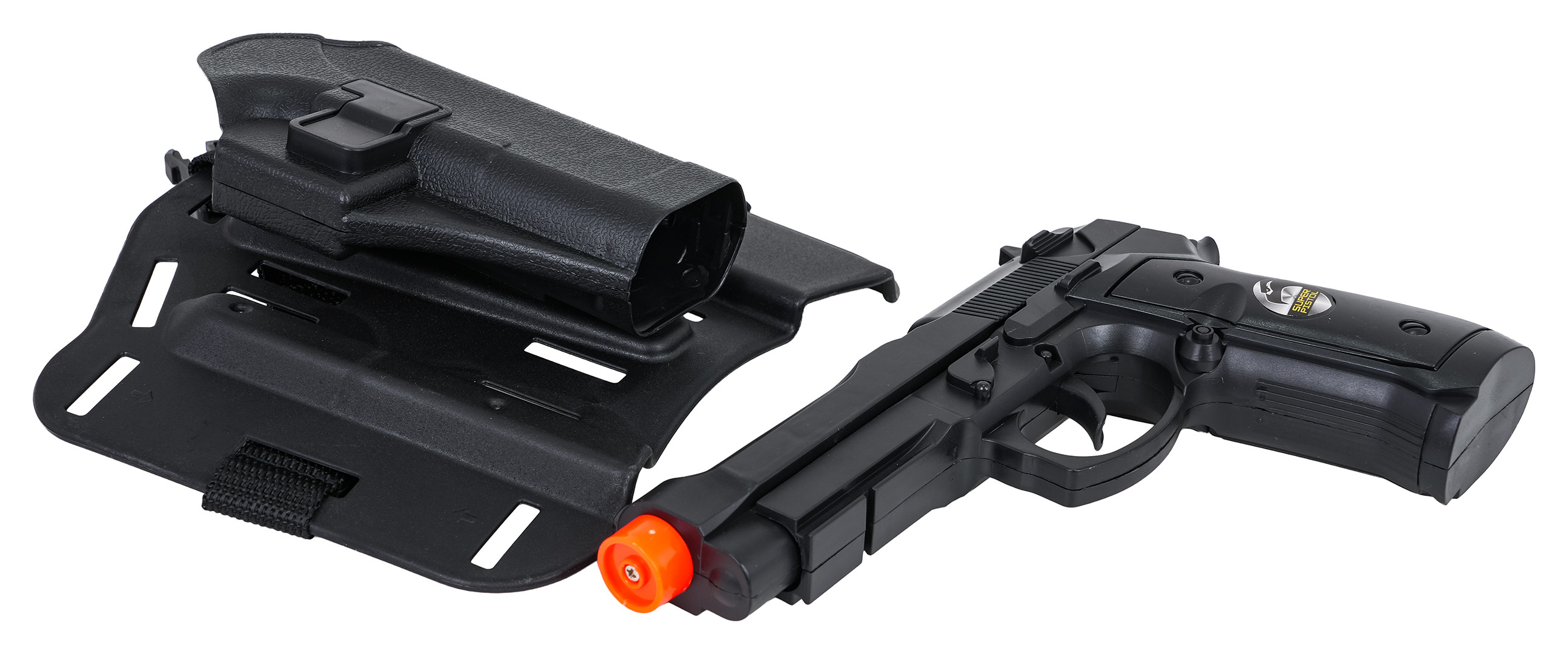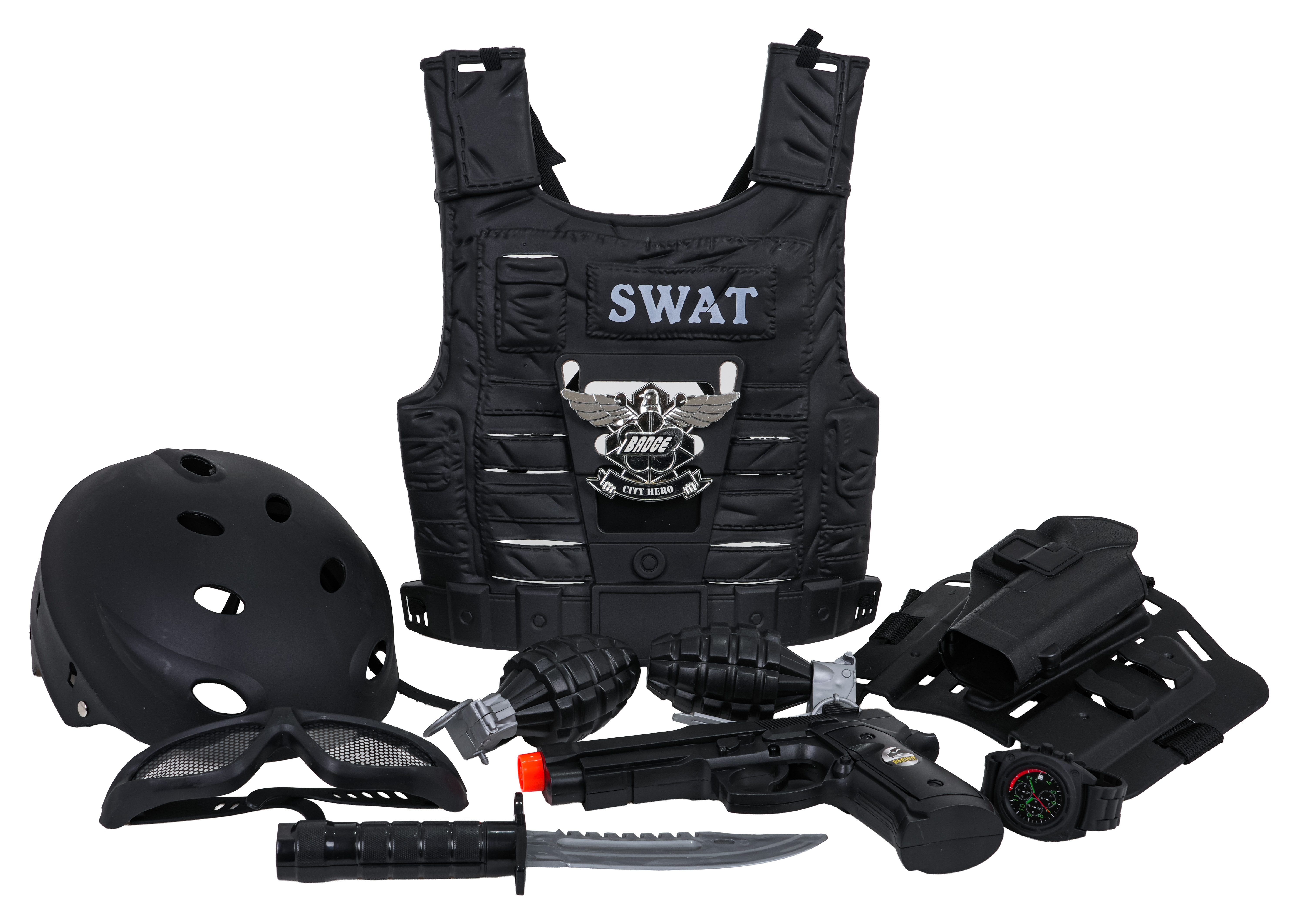 Bohatě vybavená sada policisty v černé barvě pro děti od tří let. Sada se skládá z 9 prvků, díky kterým se vaše dítě bude cítit jako skutečný policista. Sada byla vyrobena s důrazem na detaily. Bude ideální pro venkovní hry a hraní rolí. Pistole je napájena bateriemi typu 3 x AG13 (v balení). Po stisknutí spouště vydává zvuky výstřelu.