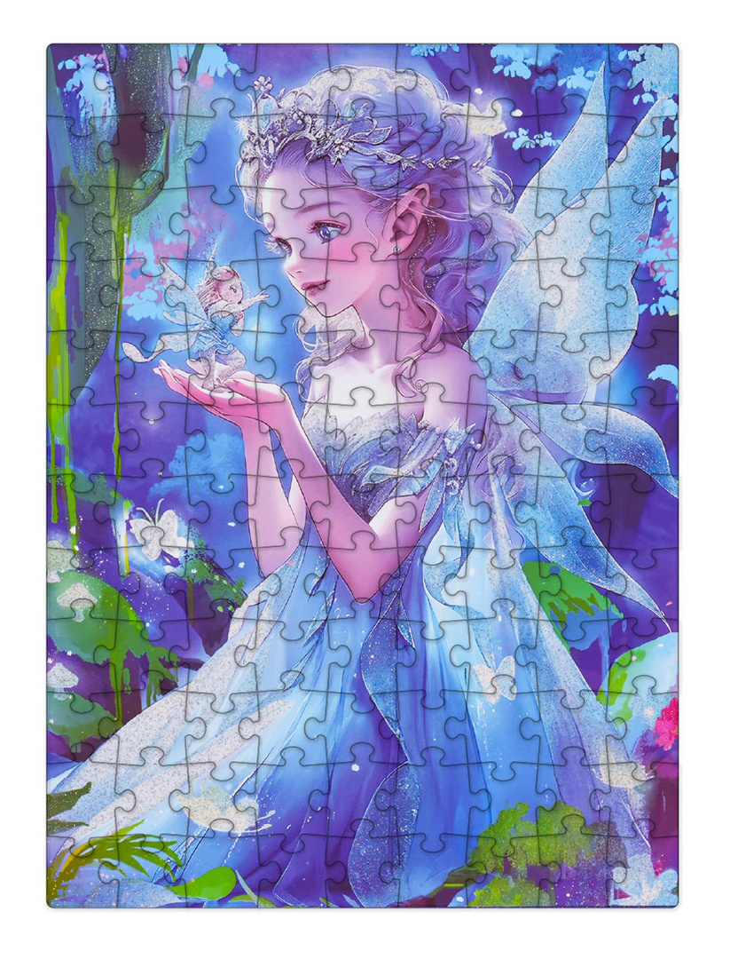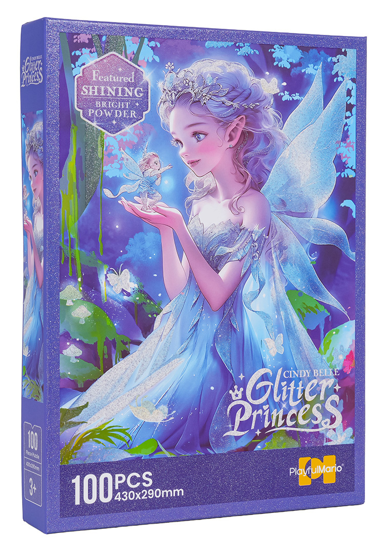 Sada puzzle 100 dílků s modrou princeznou pro děti od tří let. Po složení vznikne obrázek s prvky třpytu o rozměrech 43 cm x 29 cm. Skládání puzzle nás učí koncentraci a také zaměření na jednu věc. Umožňuje nám se odreagovat, zapomenout na problémy. Puzzle nás učí logickému myšlení, rozpoznávání tvarů a příznivě ovlivňují naši vizuální paměť.