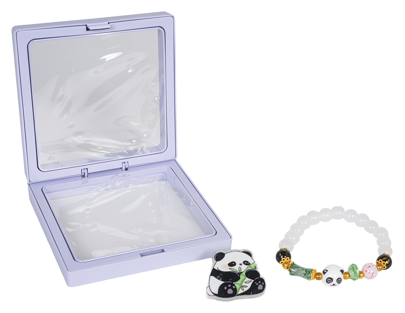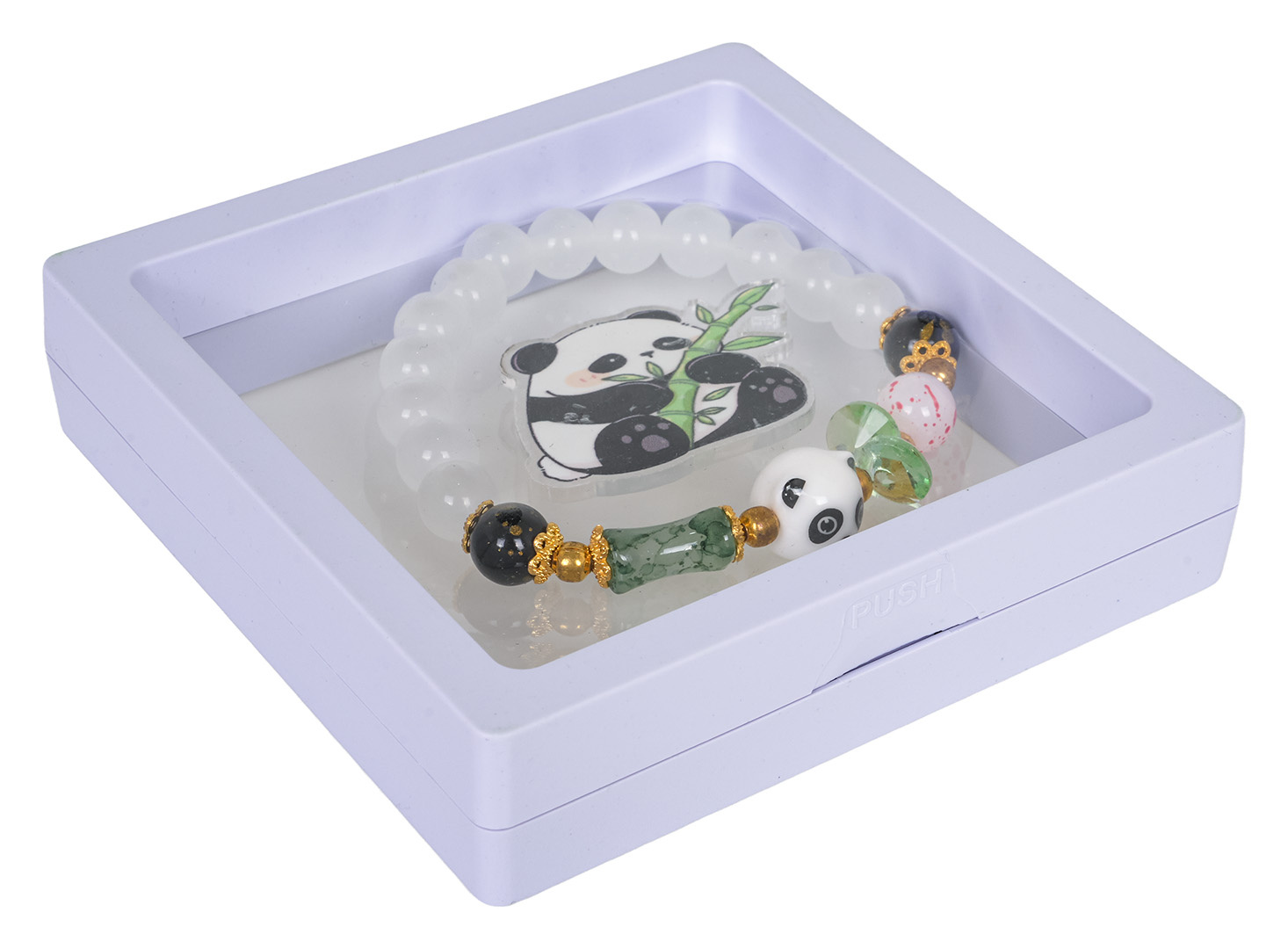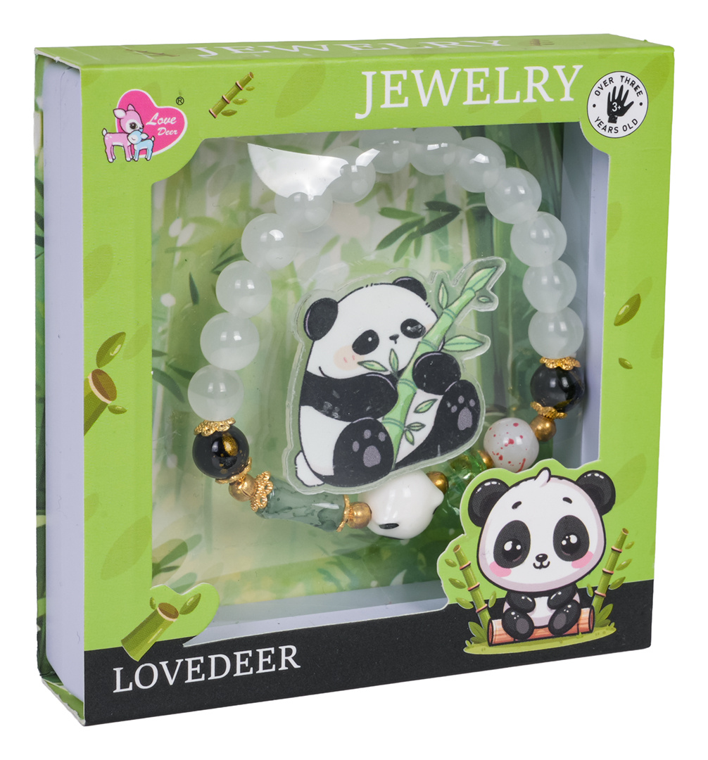 Sada šperků s pandou pro děti od tří let. Sada se skládá z krásného náramku vyrobeného z různobarevných korálků a prvku s hlavou pandy, a také sponky s pandou. Sada byla vyrobena s důrazem na detaily v živých barvách.