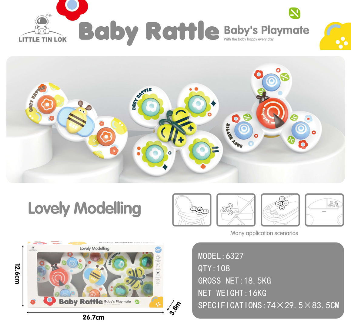 Sada 3 spinnerů s přísavkou pro děti od prvních dnů života. Spinnery při otáčení vydávají jemné zvuky. Díky přísavkám je lze připevnit na různé povrchy, jako jsou stolky, vany nebo okna v autě.