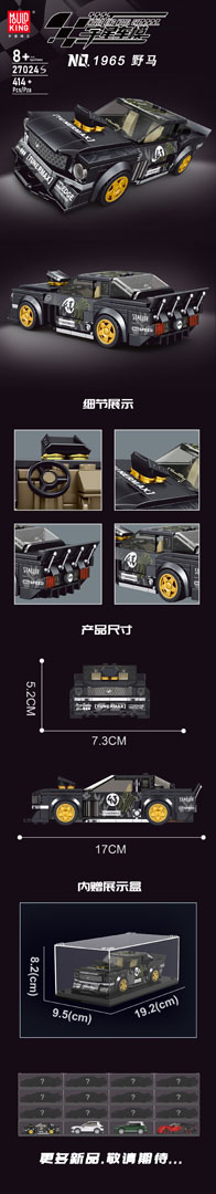 Vysoce kvalitní stavební kostky Mould King pro děti od osmi let. Sada se skládá ze 414 prvků, ze kterých lze postavit černé sportovní auto. Tento skvělý model auta jistě upoutá pozornost svými detaily. Sada obsahuje výstavní box.